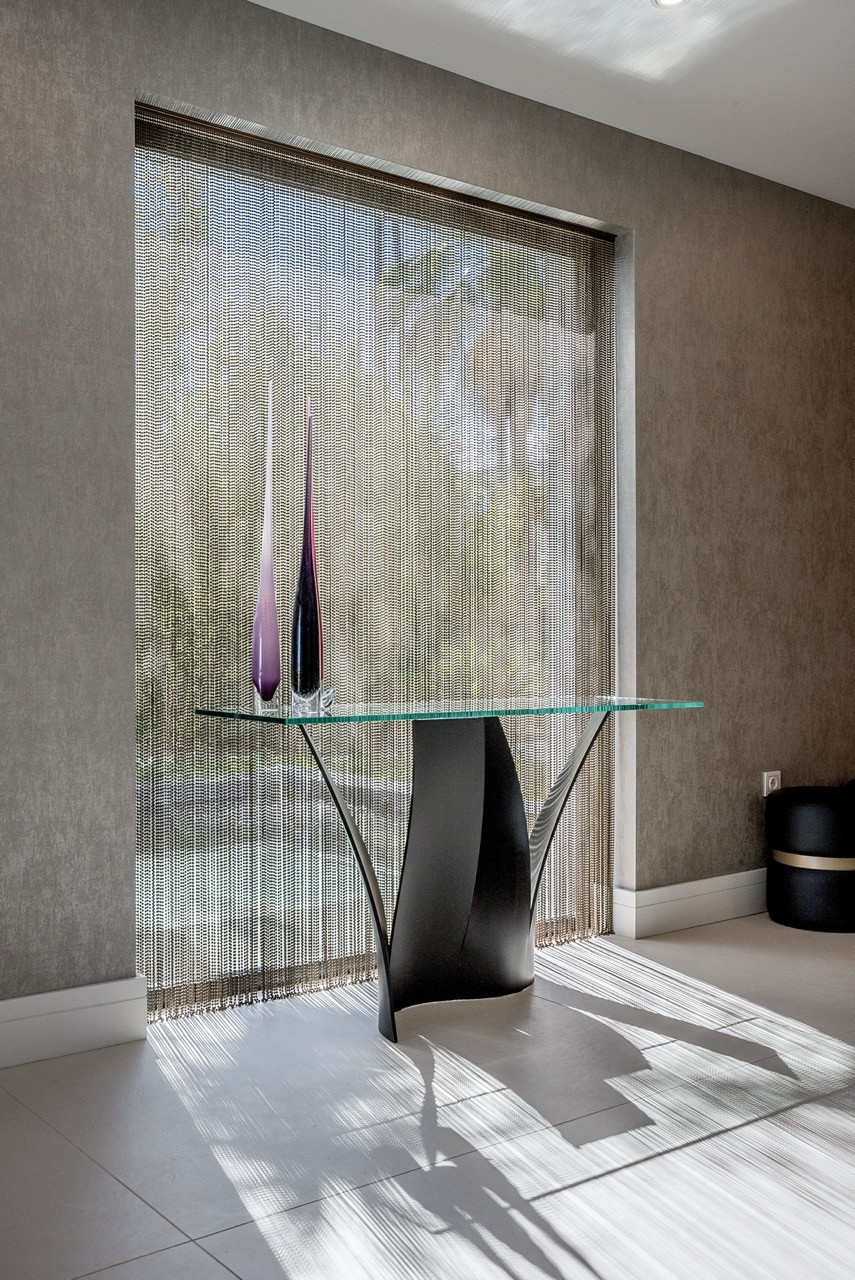 Inomhus präglas hemmet av modern sofistikering. Den öppna planlösningen i vardagsrummet förstärks av indirekt takbelysning och en mjuk, neutral färgpalett, vilket skapar en varm och välkomnande atmosfär. Matplatsen flyter sömlöst ihop med köket och sociala zoner, vilket gör det perfekt både för vardagsliv och för speciella tillfällen. Ett högklassigt ljudsystem för inomhus- och utomhusbruk säkerställer enkel och förstklassig underhållning.
