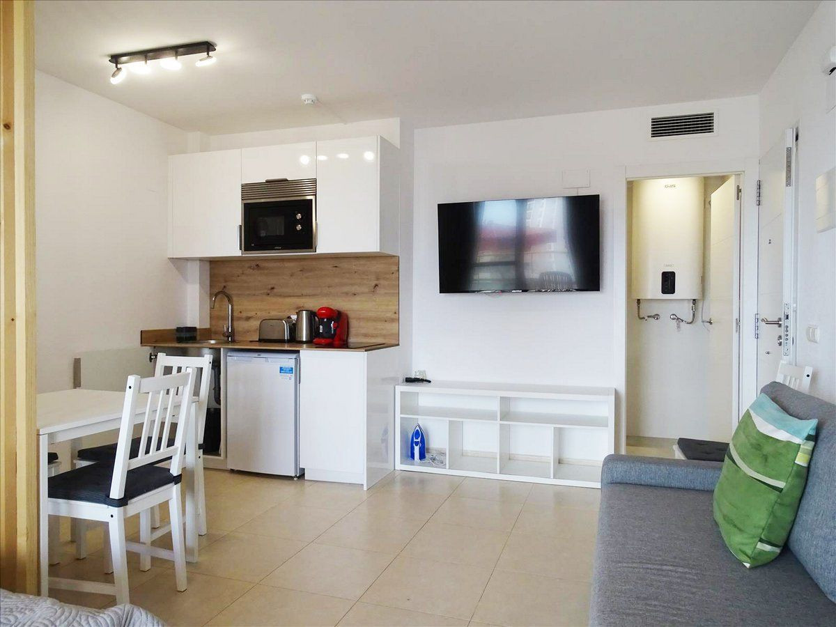 - Design: A studio perfect for those looking for a practical and well-utilized space. It has a fully equipped kitchen, a full bathroom, and a terrace with views of the sea and the famous rock. The open layout makes it ideal for renting to tourists or professionals seeking a comfortable and compact place.