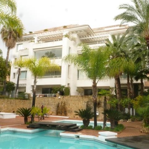 Discover an exquisite beachfront penthouse nestled in the heart of Marbella's prestigious Golden Mile, perfectly positioned between the iconic Puente Romano and the vibrant Puerto Banus. This stunning residence boasts commanding views of lush gardens, a sparkling pool area, and the shimmering sea, with vistas extending all the way to Gibraltar and the African Coast.