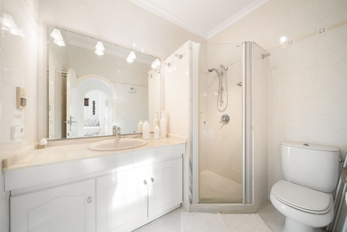 Discover this stunning detached villa, nestled in the most sought-after street of El Chaparral, just a 5 minute drive from the bustling La Cala de Mijas. Boasting a prime front line golf location, this exquisite home offers a perfect blend of elegance and comfort. Spread across two levels, the villa features four spacious bedrooms, including a master suite with an ensuite bathroom, and three additional double bedrooms and three bathrooms on the ground level. There is an additional benefit of underfloor heating in the bathrooms and solar panels for heating water at the property.