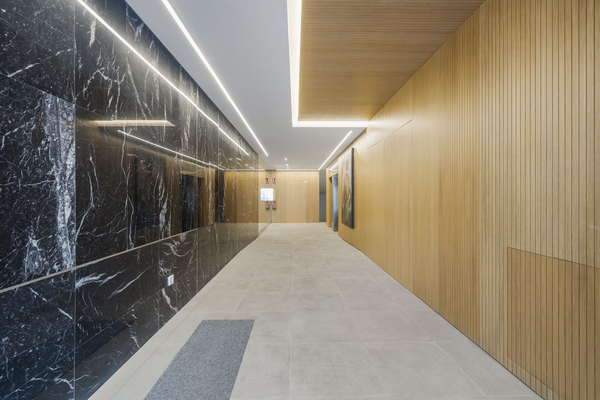 Splendid 2 bedroom 2 bathroom middle floor apartment with terrace with views on the courtyard in a newly constructed modern complex in the city center of the lively Fuengirola.