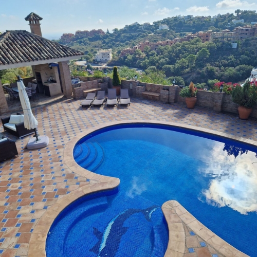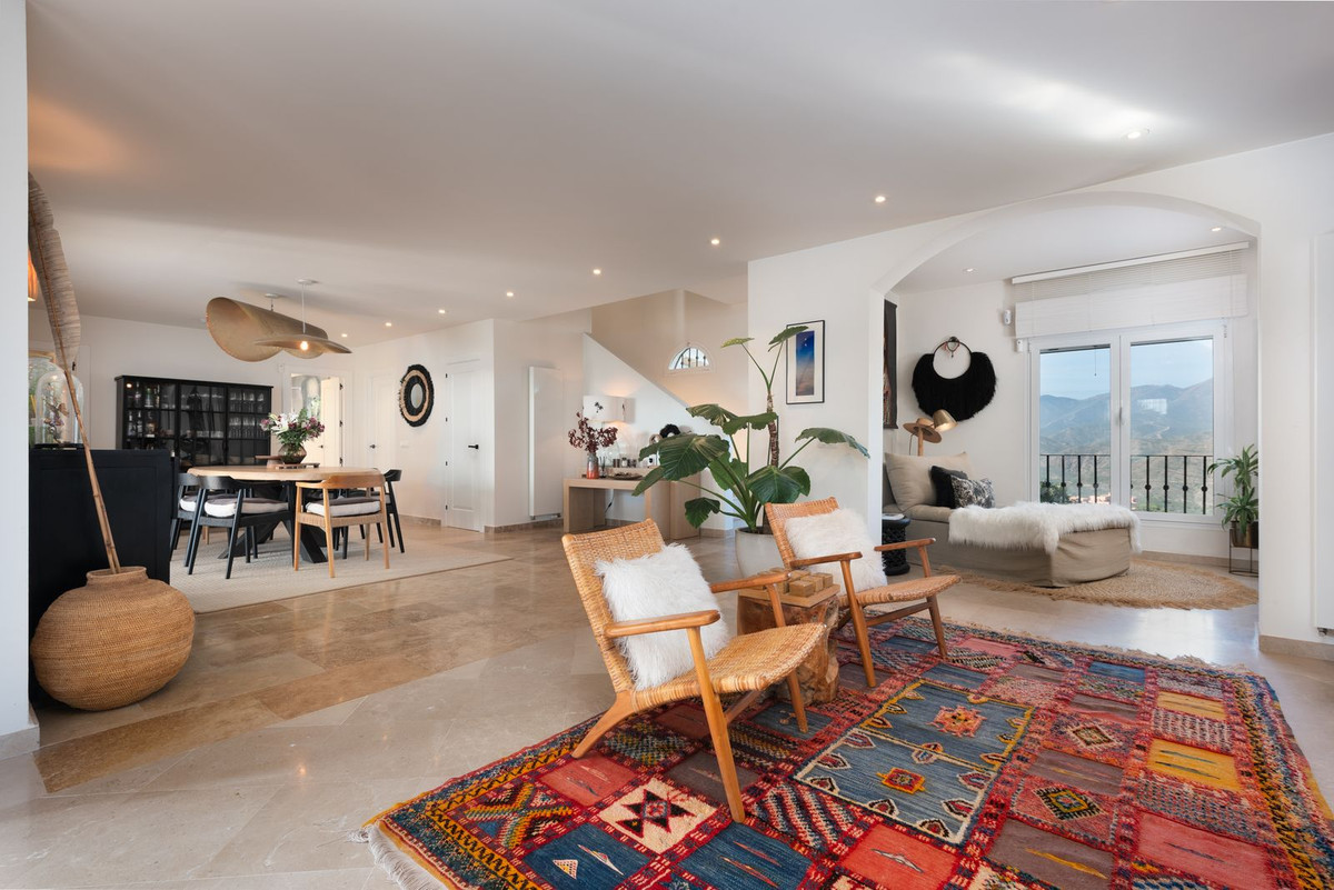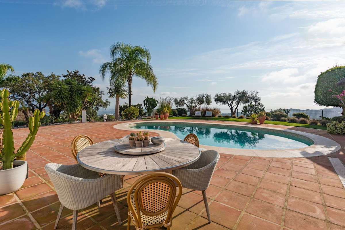 Located in La Mairena, near Elviria, the villa is set on top of the slope ridge offering unparalleled 360º views of the sea, surrounding mountains, and the picturesque Valley of La Mairena, stretching down to La Cala Golf Resort. The property offers complete privacy, breathtaking views, and an awe-inspiring pool area, making it the perfect retreat.