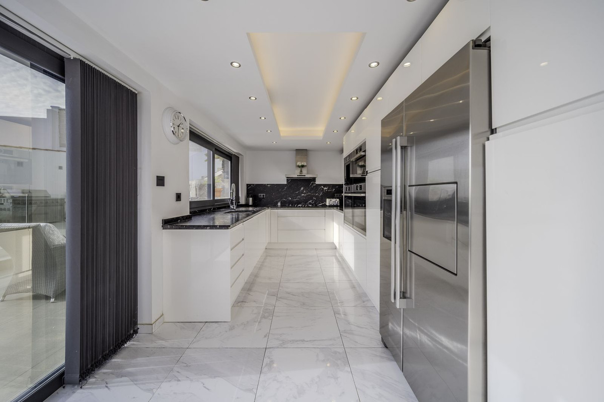 Invändigt erbjuder villan ett **rymligt kök integrerat i vardagsrummet**, idealiskt för familjesammankomster och sociala evenemang, samt ett **utekök på terrassen**, designat för att njuta av måltider under bar himmel med enastående utsikt. Totalt har fastigheten **tre kök**.