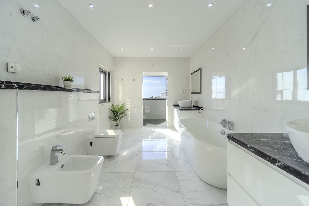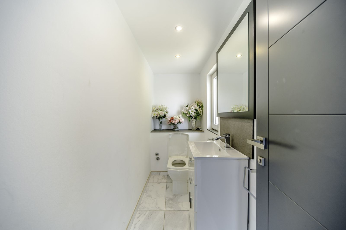 Villan har **6 sovrum**, alla med eget badrum, samt en **extra gästtoalett vid poolområdet** för ökad bekvämlighet. Ett av sovrummen är helt fristående och utformat som en självständig lägenhet med ett **eget kök** och **separat ingång**, vilket gör det perfekt för långtidsuthyrning eller att ta emot gäster med fullständig avskildhet.