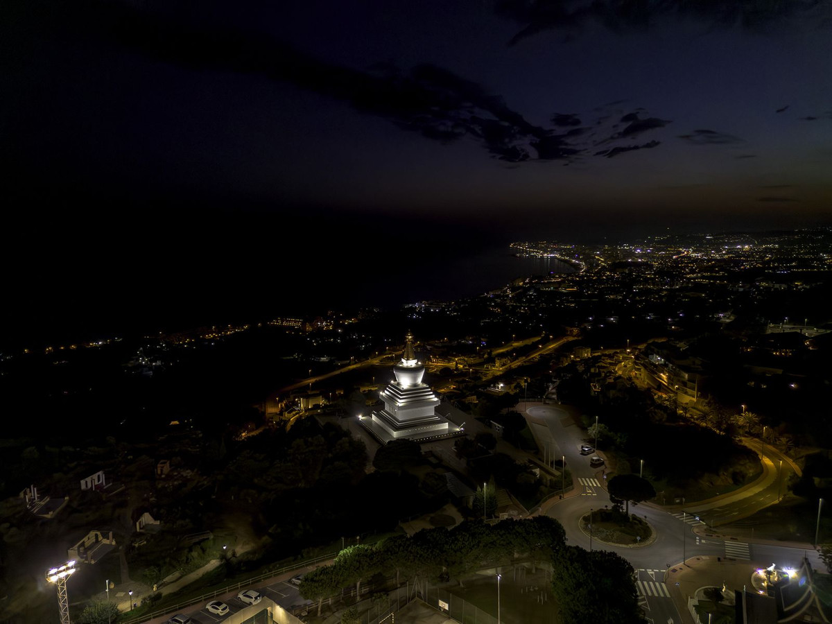 Villans exteriör är en sann lyxig oas. Den inkluderar en **uppvärmd pool**, flera chill-out-områden strategiskt placerade runt fastigheten och en **jacuzzi med panoramautsikt över havet och den ikoniska buddhistiska stupan**. Varje detalj är noggrant utformad för att ge avslappning och maximera det soliga klimatet på Costa del Sol.