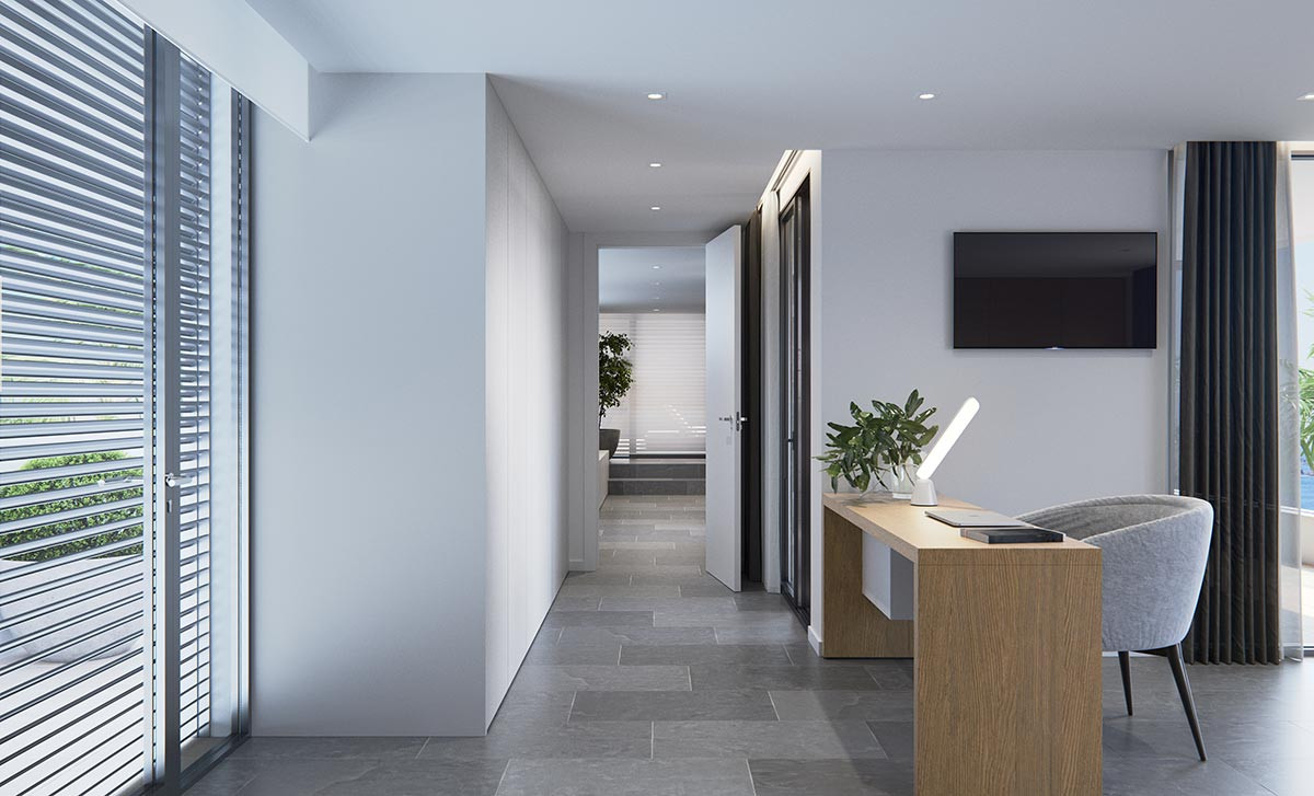 This villa is a design made by the Swiss architect Massimo Di Caudo. An architectural concept based on clear, cubic and functional lines in a unique enclave.