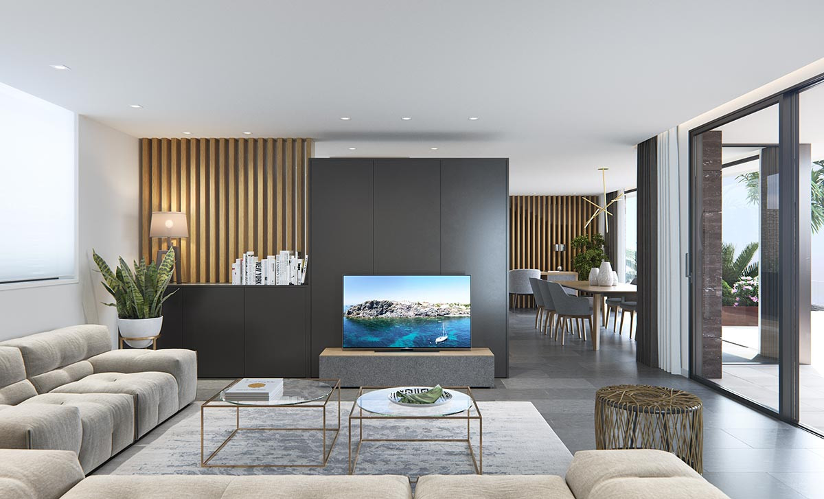 Gardens with water drainage system in the floor, completely finished and customizable including vegetation, irrigation and lighting. Jacuzzi and relaxation area with Mediterranean sea views. Pool of 10 x 5 meters with infinite views of the Mediterranean, with roller cover and heated. Terraces at various heights creating cozy environments surrounded by vegetation and endless sea views. Villa protected with TV cameras on the outside and motion detectors inside.