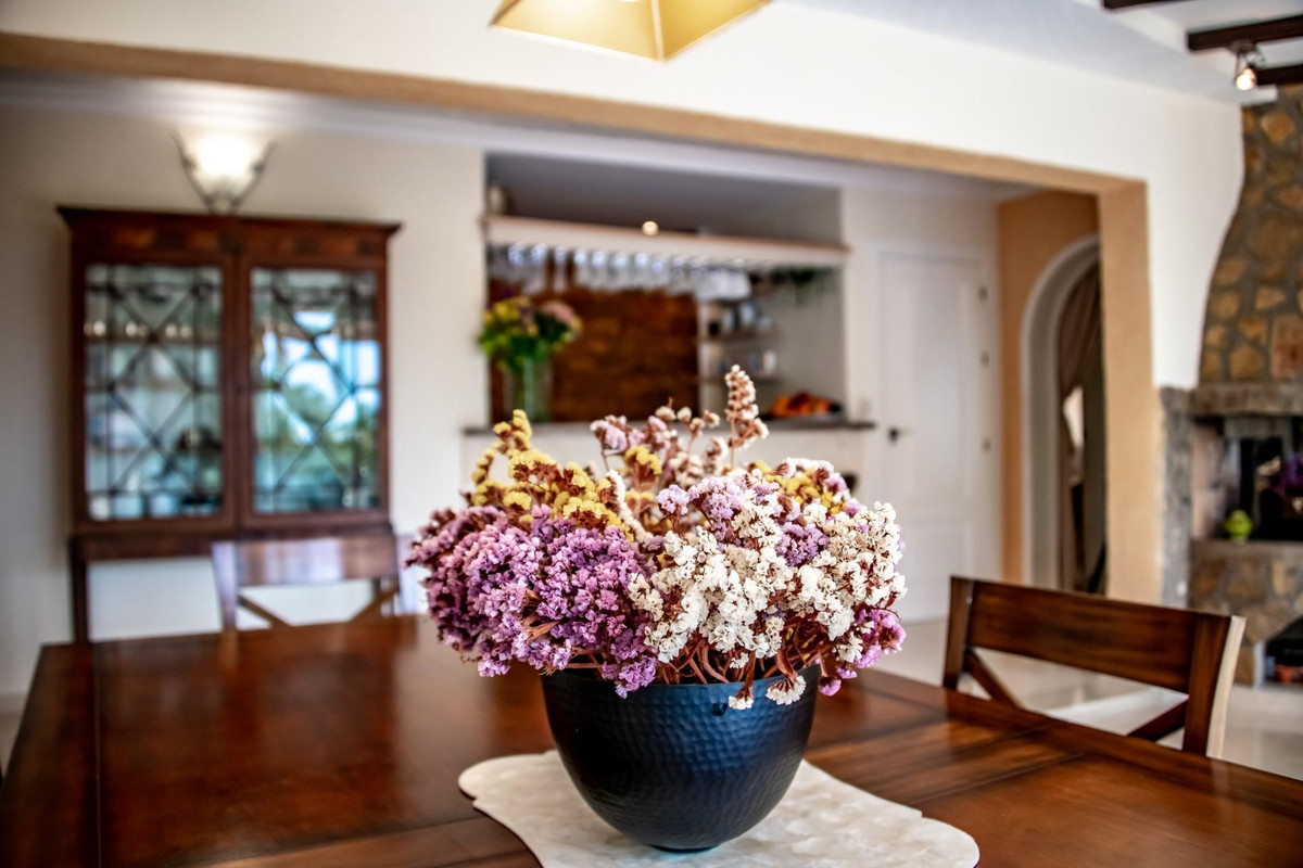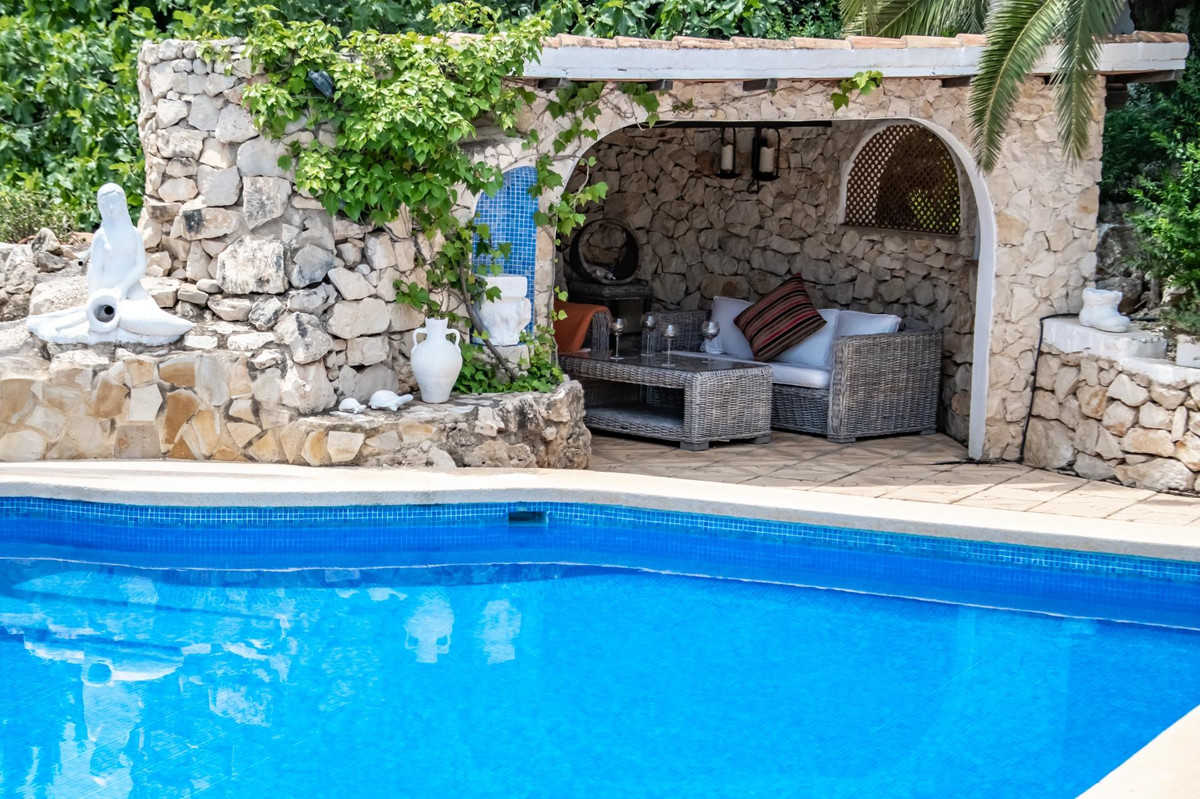FOR SALE UNFURNISHEDThis stunning villa is for sale in the prestigious Canuta de Ifach urbanization in Calpe. Its prime location, just 63 km from Alicante, an hour's drive from Elche Airport, and an hour and a half from Valencia, makes this villa the perfect choice for comfortable living or unforgettable vacations.The villa, built on top of a terrace with breathtaking views of the valley, is spread across three levels. The upper level houses the main living area, the middle level features a stylish swimming pool, and the lower level is dedicated to a picturesque garden with a barbecue area, summer dining area, pond, and a children's playground.The main house is divided into two floors. On the first floor, you will find a spacious living room with a fireplace, a fully equipped kitchen, and three bedrooms, each with its own en-suite bathroom and dressing room. The second floor features an independent apartment with a living room, fireplace, a bedroom with sea views, and a private bathroom.Additionally, the property includes a cozy guest house with a kitchen, bedroom, and bathroom, perfect for hosting friends or family. There is also a closed garage and parking space for two cars.This villa offers everything needed for comfortable living: bright, spacious rooms, modern heating and air conditioning systems, as well as privacy and exceptional comfort. Feel free to contact us for more information or to arrange a viewing!