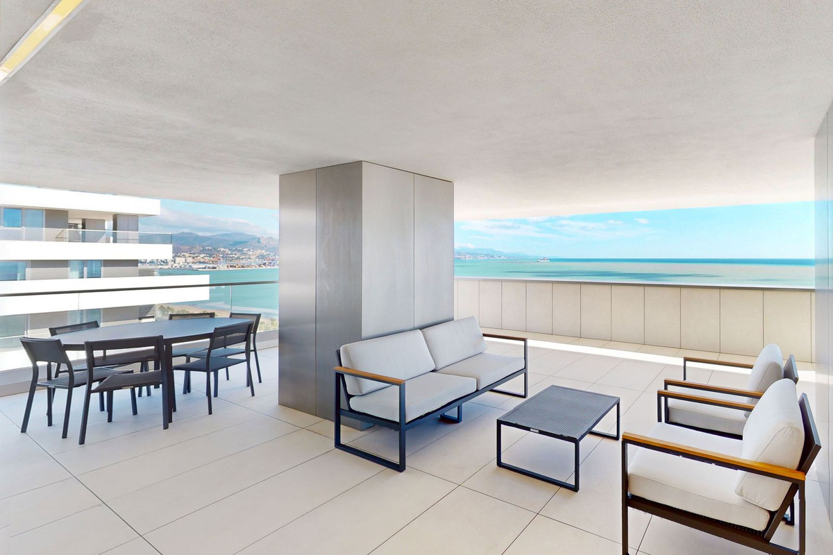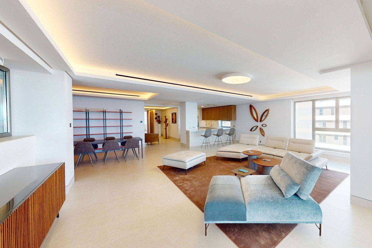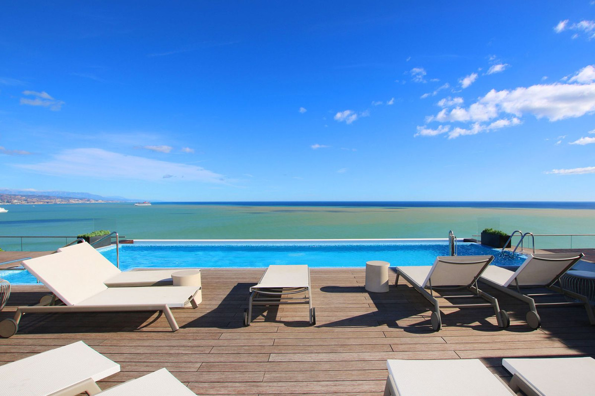 Med panoramautsikt över stranden är denna lägenhet med fyra sovrum ett mästerverk i design. Den erbjuder en öppen planlösning som sömlöst integrerar modern lyx med fantastisk naturlig skönhet. Varje rum badar i naturligt ljus och visar upp hisnande vyer över Medelhavskusten och staden Malaga. Med sin stora boyta på 500 m² känns denna bostad verkligen som en villa i himlen.