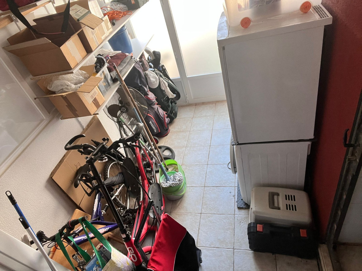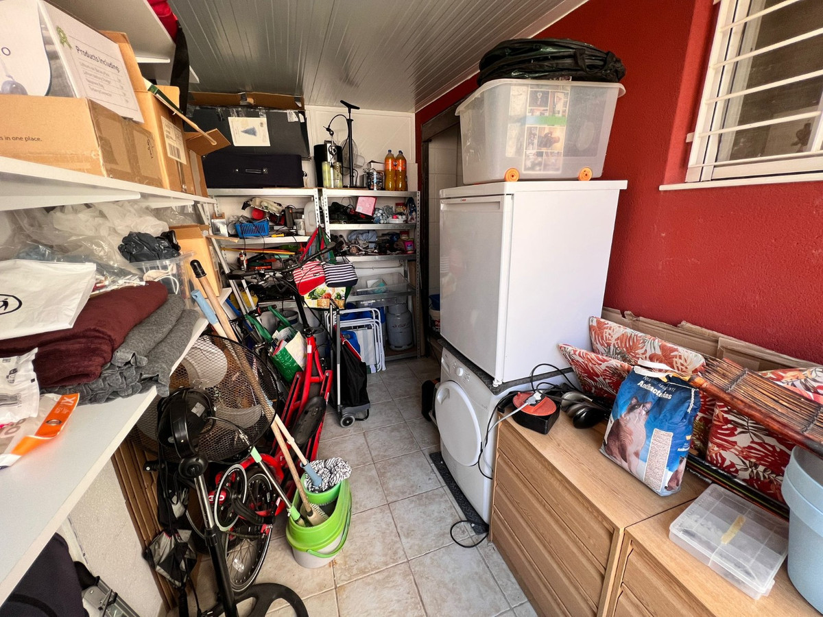 The property is part of a community, where you can enjoy access to a communal swimming pool. The kitchen is independent, and there is ample storage space, including a separate storage room. For added comfort, the house is equipped with air conditioning and has a laundry area.