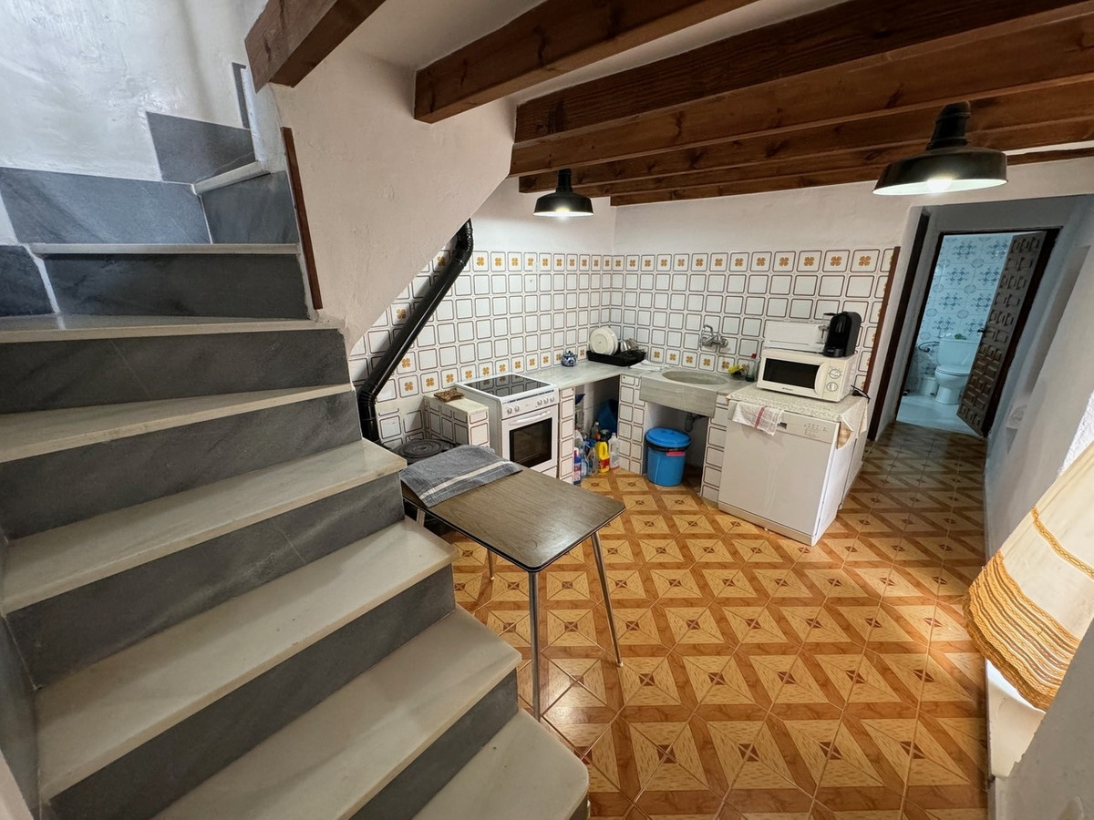 With street parking to the front, the property is situated just off the village church square.  Internally the home is full of charm with andalucian tiles and wooden beams and consists of an entrance reception room that leads through into the main dining area, a large space with feature fireplace.