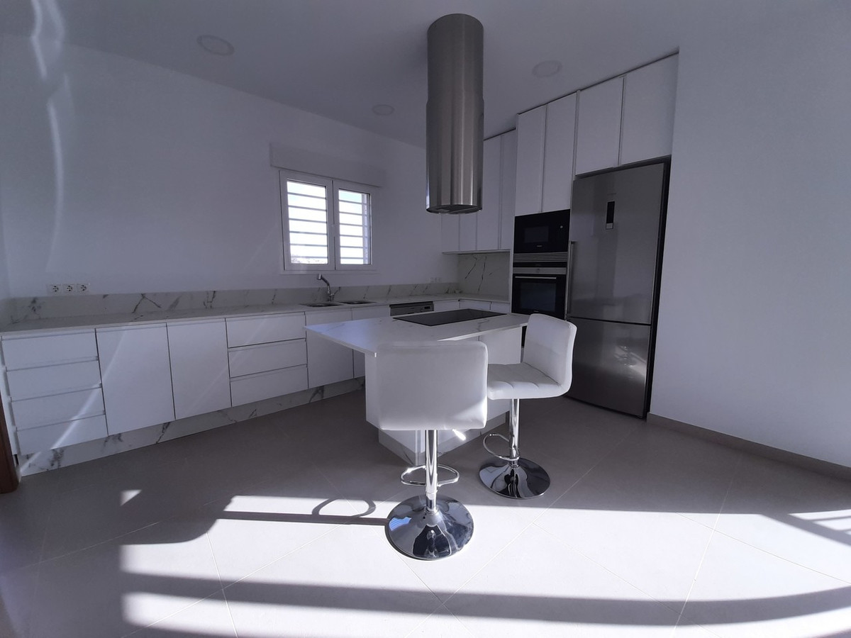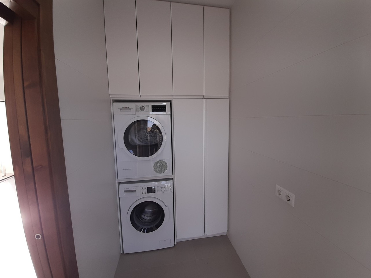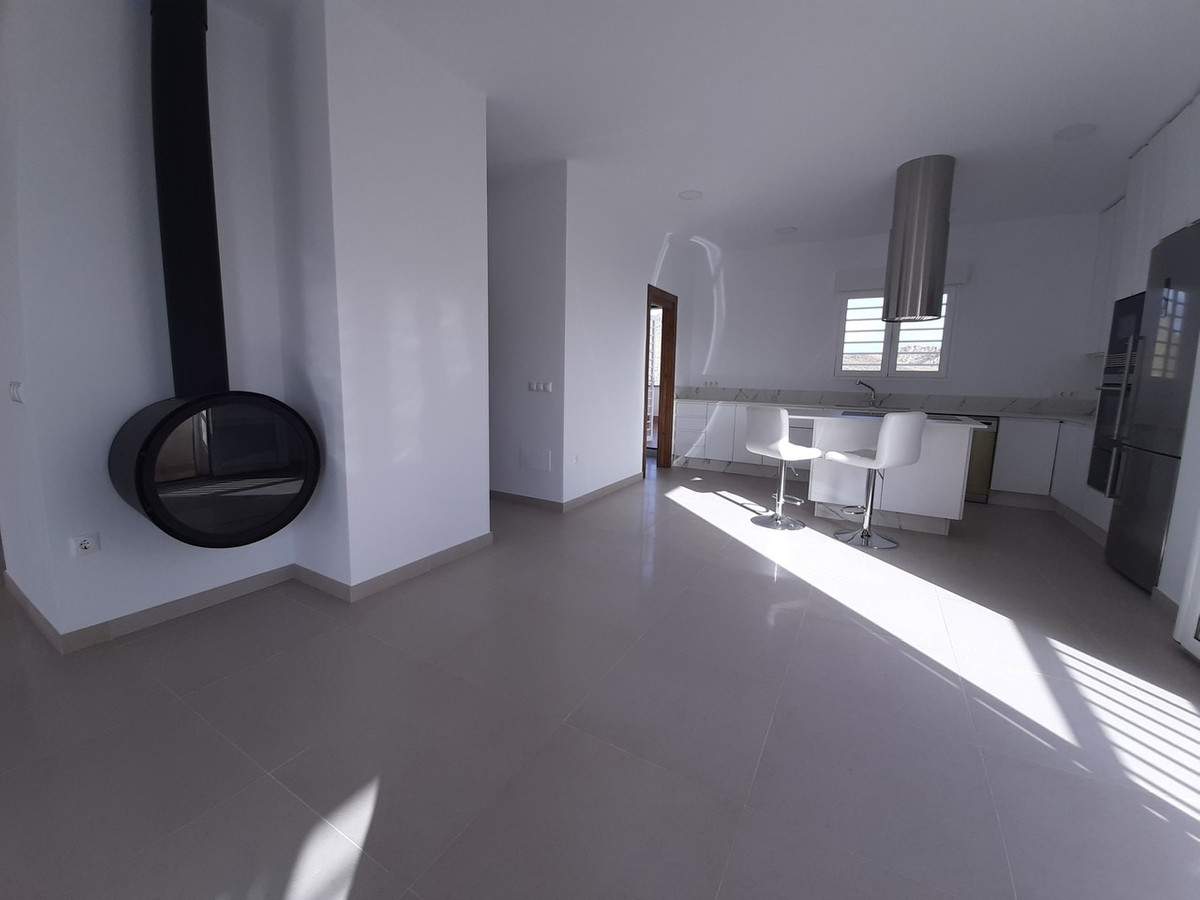 This modern villa has 3 levels, the main level has its main entrance which leads onto two double bedrooms with fitted wardrobes, family bathroom, a separate guest toilet, a bright and large lounge dining room with wood burner, an open plan kitchen with modern integrated appliances and a utility room with a washing machine and tumble dryer installed.