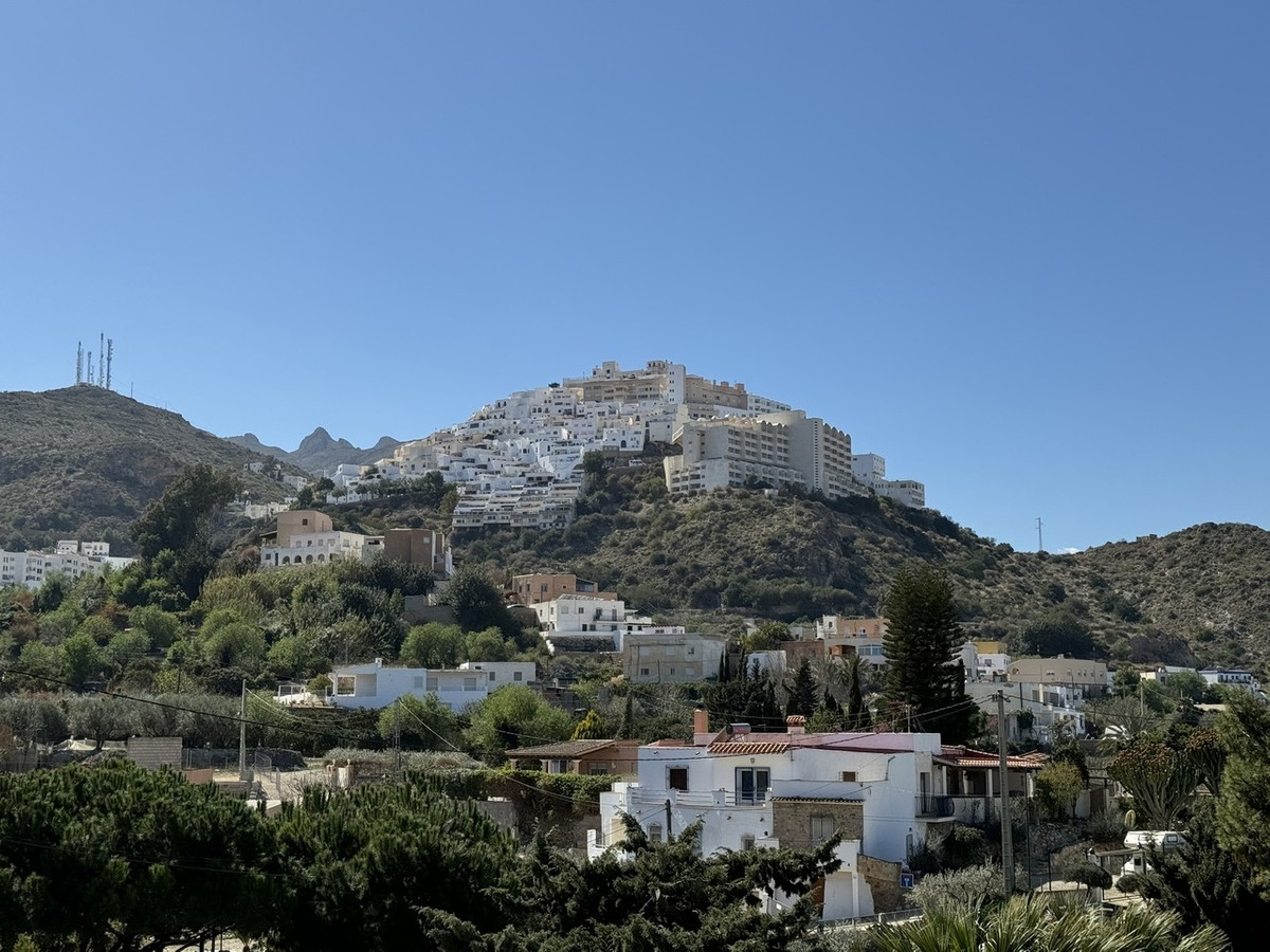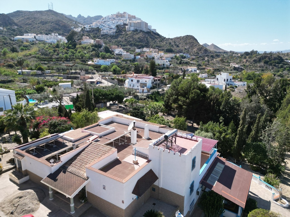 With access directly from Mojacar pueblo, the front of the property has off road parking for several vehicles.  The main entrance leads into a spacious hallway with traditional wooden doors leading into the main home.