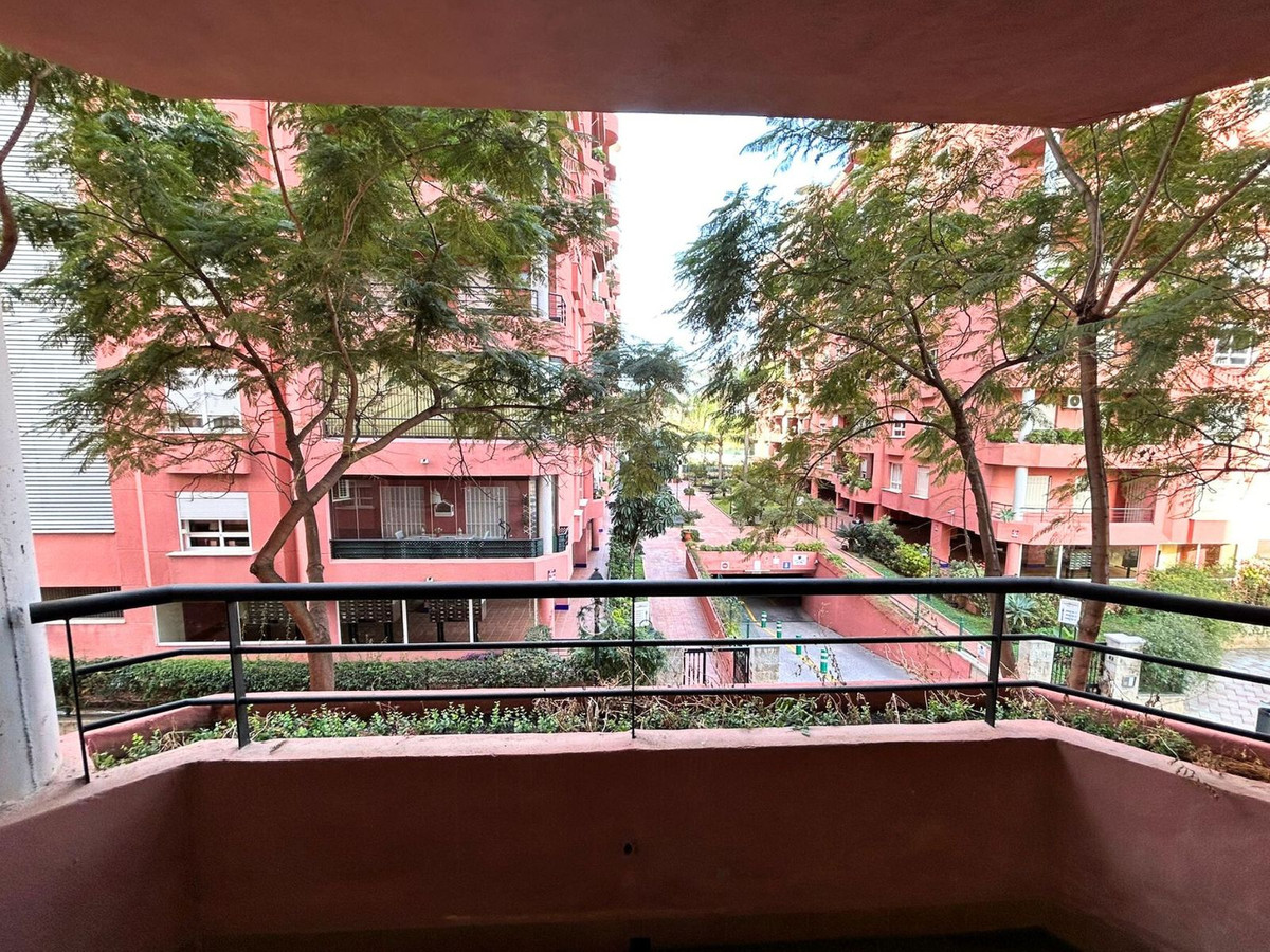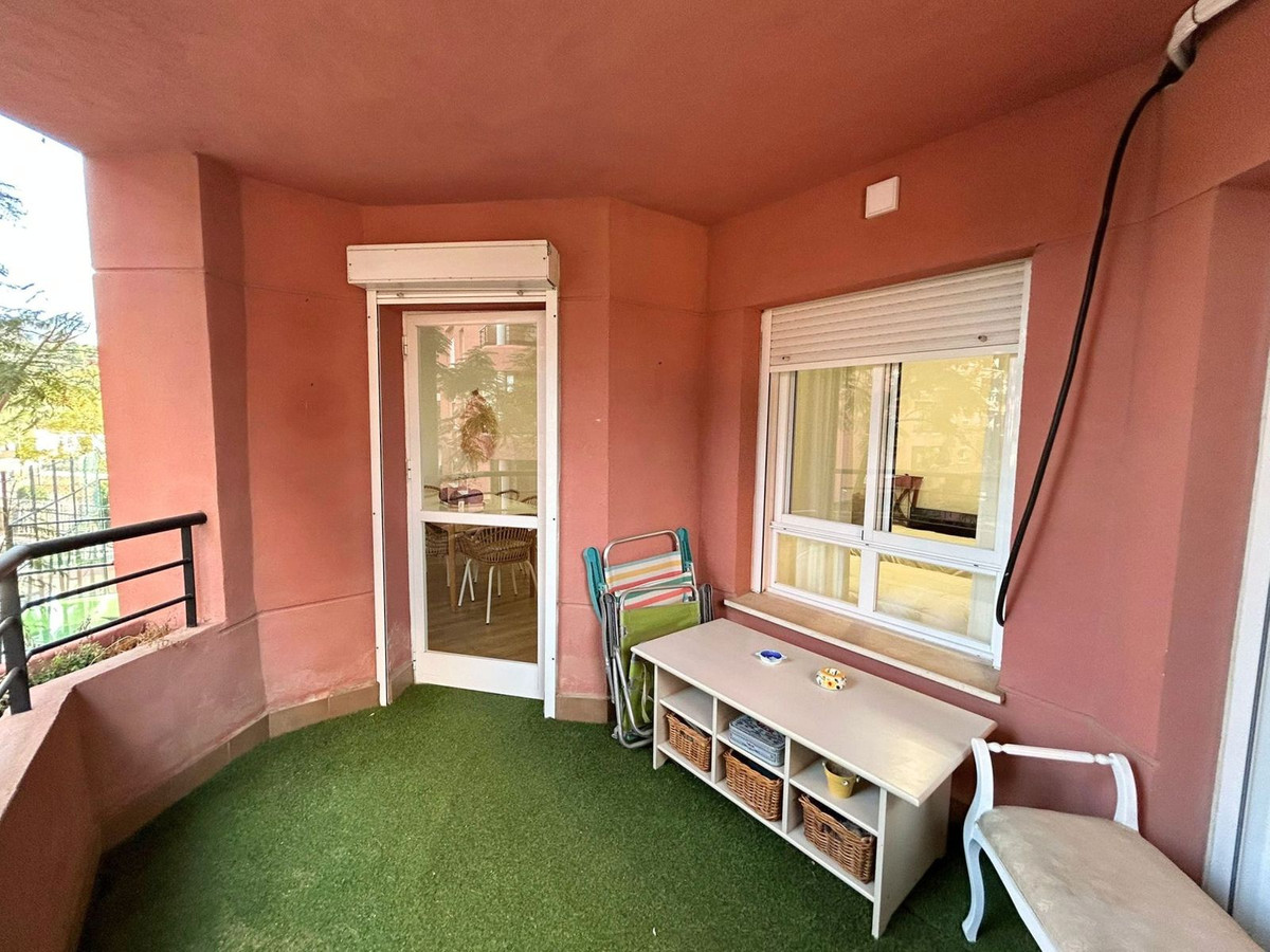 Vi presenterar denna obefläckade lägenhet till salu i den exklusiva Las Pérgolas-urbaniseringen. Vid ingången till fastigheten möts vi av ett ljust och rymligt vardagsrum-matrum med integrerat kök, vilket skapar en modern och inbjudande atmosfär. Från detta utrymme når du en liten balkong, perfekt för att njuta av en morgonkaffe.