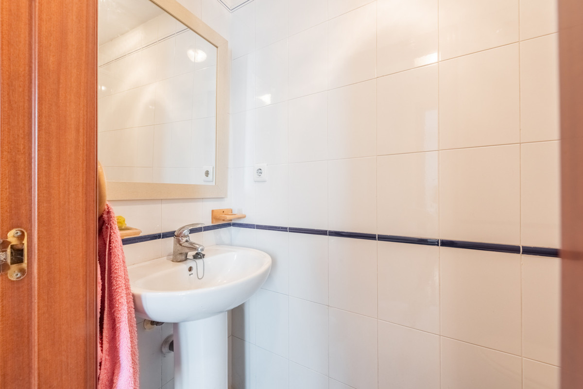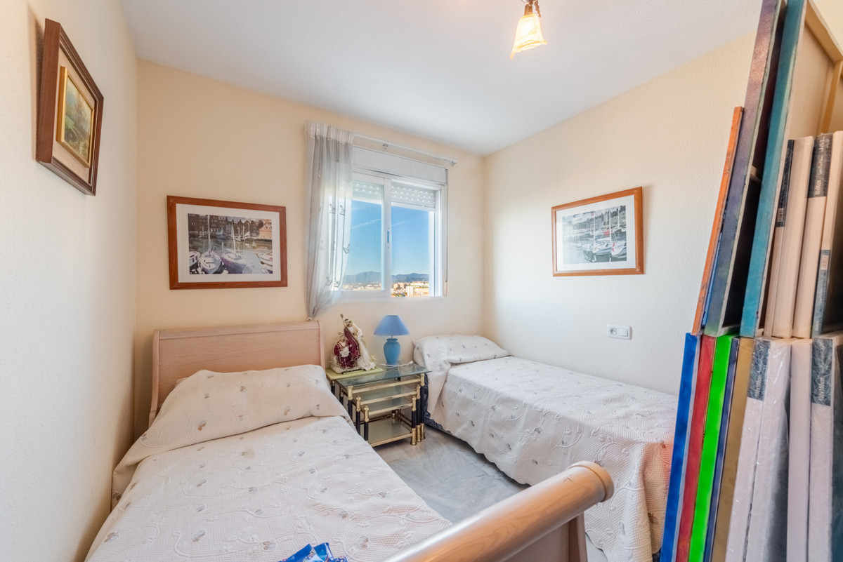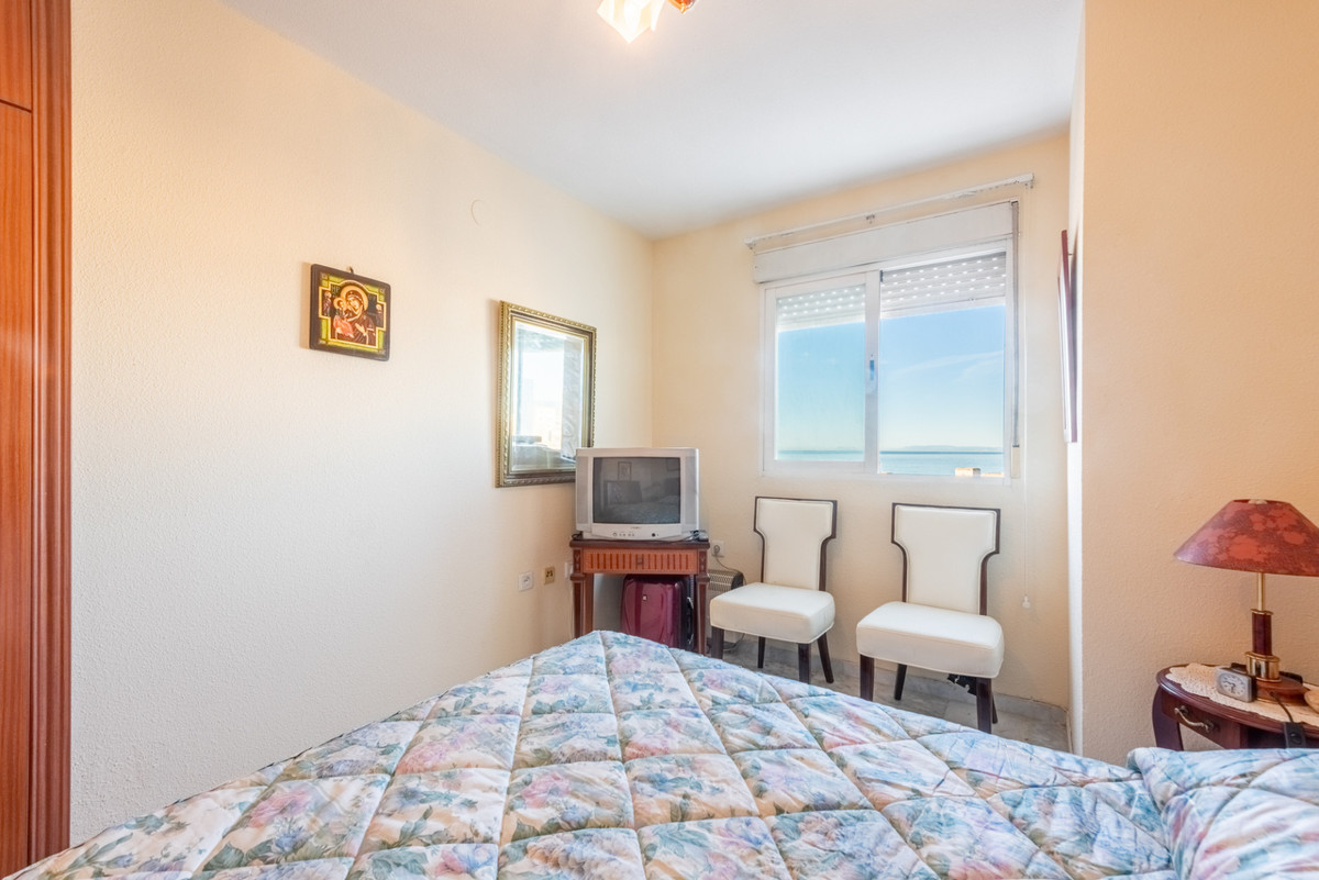 Lägenheten har två rymliga sovrum med inbyggda garderober, ett badrum, en extra toalett och ett fullt utrustat kök. Den har även en privat terrass, den perfekta platsen för att koppla av och njuta av panoramautsikt över både havet och staden.