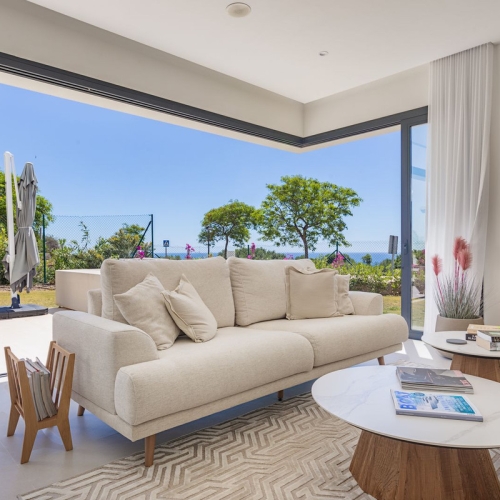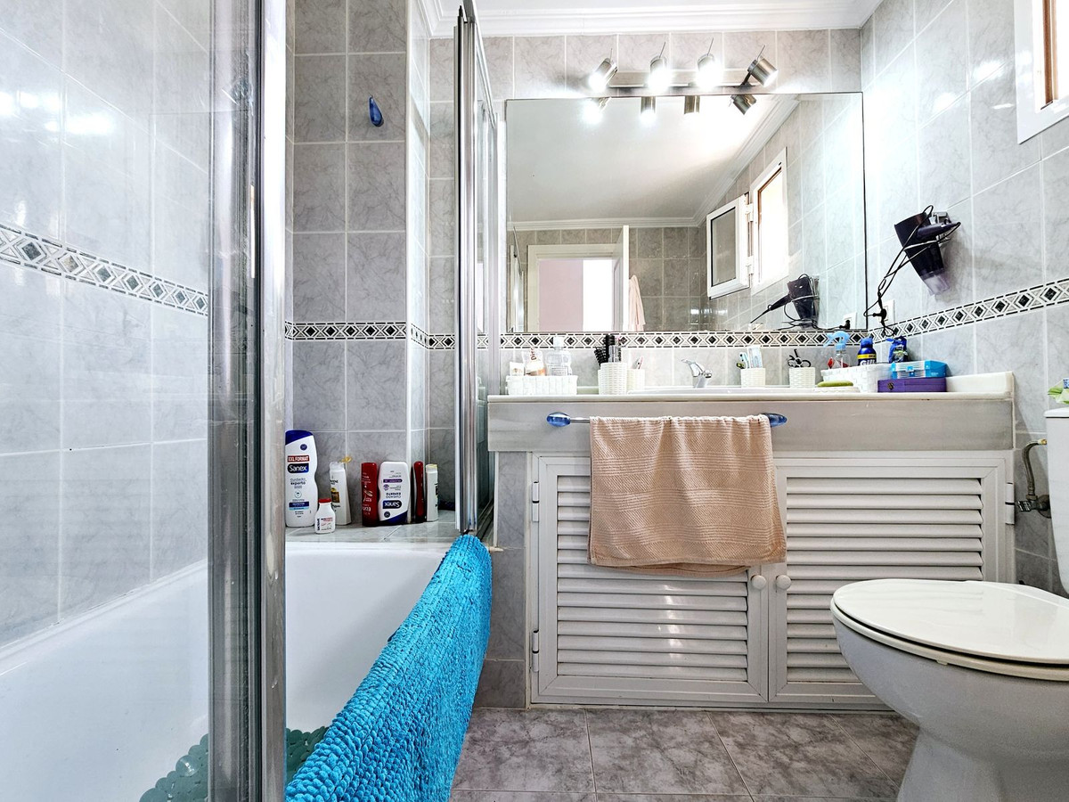 Fastigheten nås via en attraktiv veranda i andalusisk stil med vackert kakel och krukväxter som öppnar upp i entréhallen med stora skåp. Till vänster är det fullt utrustat kök med separat grovkök och gästtoalett. Ner några steg tar dig in i det stora vardagsrummet, matsalen med en praktisk bar för de som gillar att underhålla, och detta leder rakt ut till den stora terrassen med vackert andalusiskt kakel och färgglada växter. Det finns tillräckligt med utrymme på den här terrassen för familjemiddagar och ett avkopplingsområde. En grind i slutet av terrassen tar dig till den gemensamma trädgården och poolen med direkt tillgång till stranden.