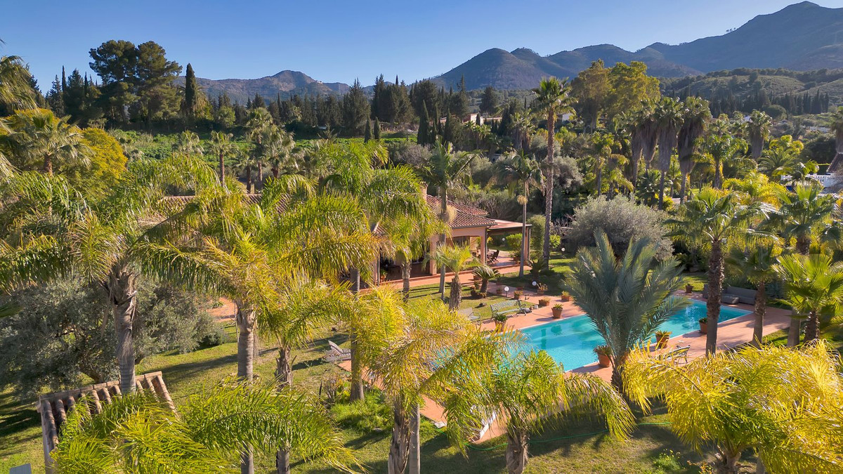 The property has three spacious bedrooms, each with its own full bathroom, plus an additional room housing a laundry room and a sauna. The jewel of this estate is its 20 metre x 5 metre swimming pool, surrounded by palm trees and with breathtaking views of the mountains. For exercise enthusiasts or those looking to relax outdoors, the dojo in the garden is the perfect place.