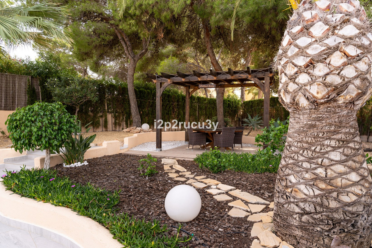 Layout and Living SpaceThe villa is entirely on one level, making it both practical and comfortable. As you enter, you are welcomed into a spacious, light-filled living room that seamlessly flows into the dining area and the modern open-plan kitchen. This kitchen features a stylish island, high-quality built-in appliances, and offers plenty of space for cooking and dining with family and friends. Thanks to the open layout, you will enjoy a harmonious connection between the living areas, creating a spacious feel while allowing natural light to flow throughout the home.The living room provides direct access to the large covered terrace. Here, you can relax all year round, whether in the shade or the sun, while enjoying views of the sparkling pool and the extensive surrounding terraces. This outdoor space is perfect for taking advantage of the Mediterranean climate, whether you're sunbathing, dining al fresco, or simply relaxing in your private, peaceful garden with full privacy. The beautifully landscaped and fully enclosed garden offers plenty of privacy, making it a tranquil oasis of peace and beauty.