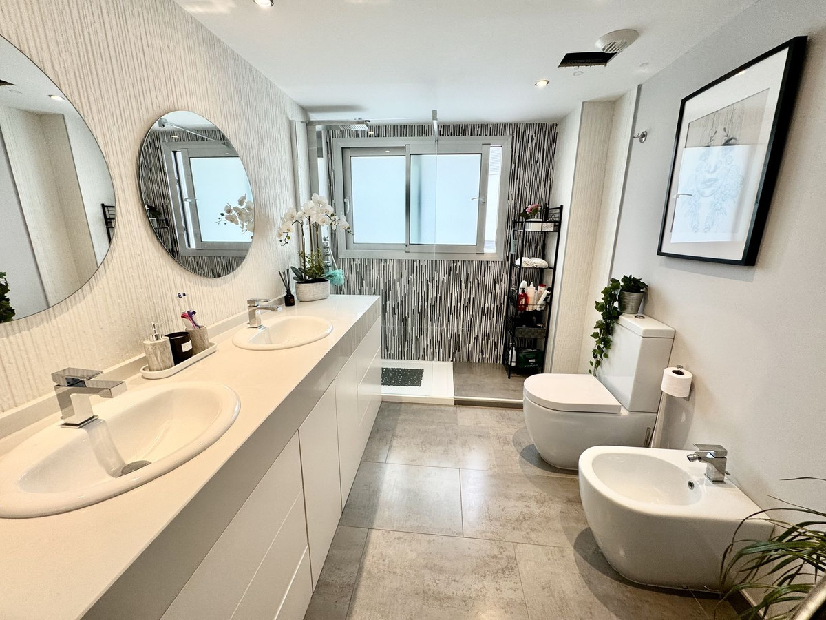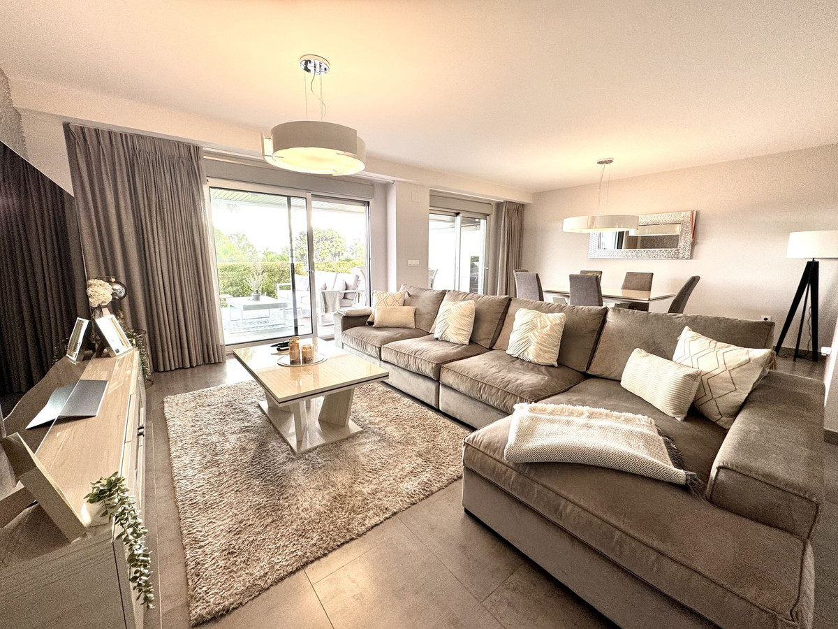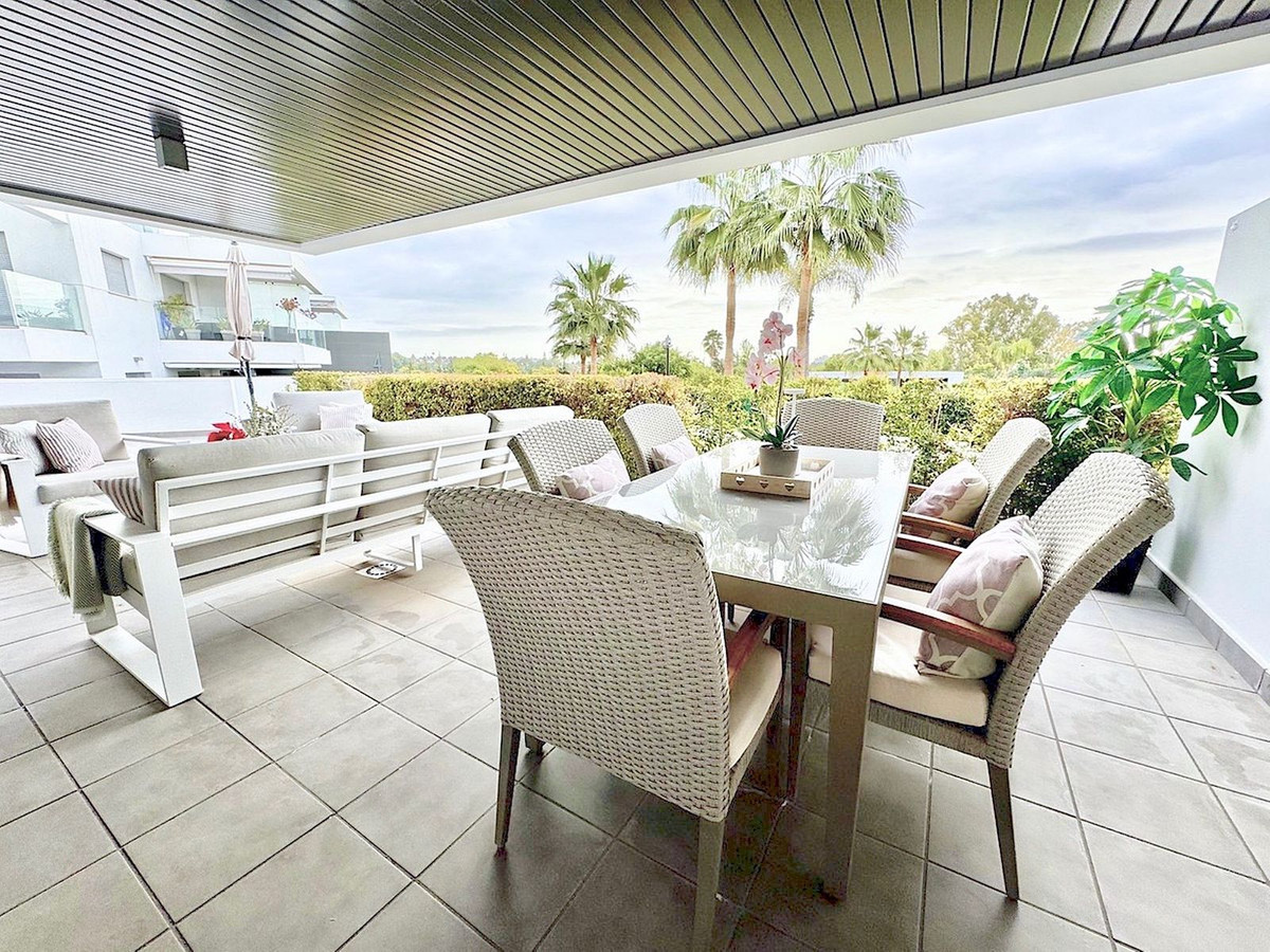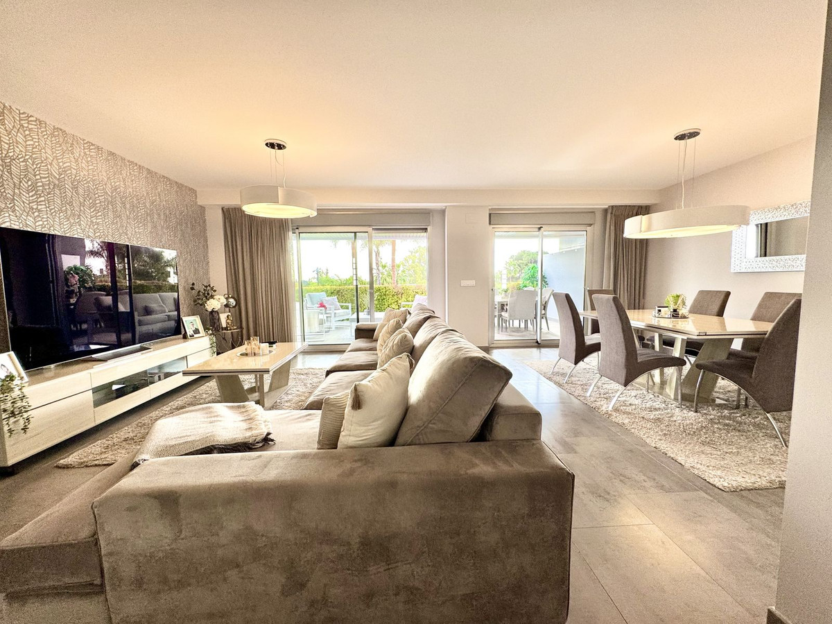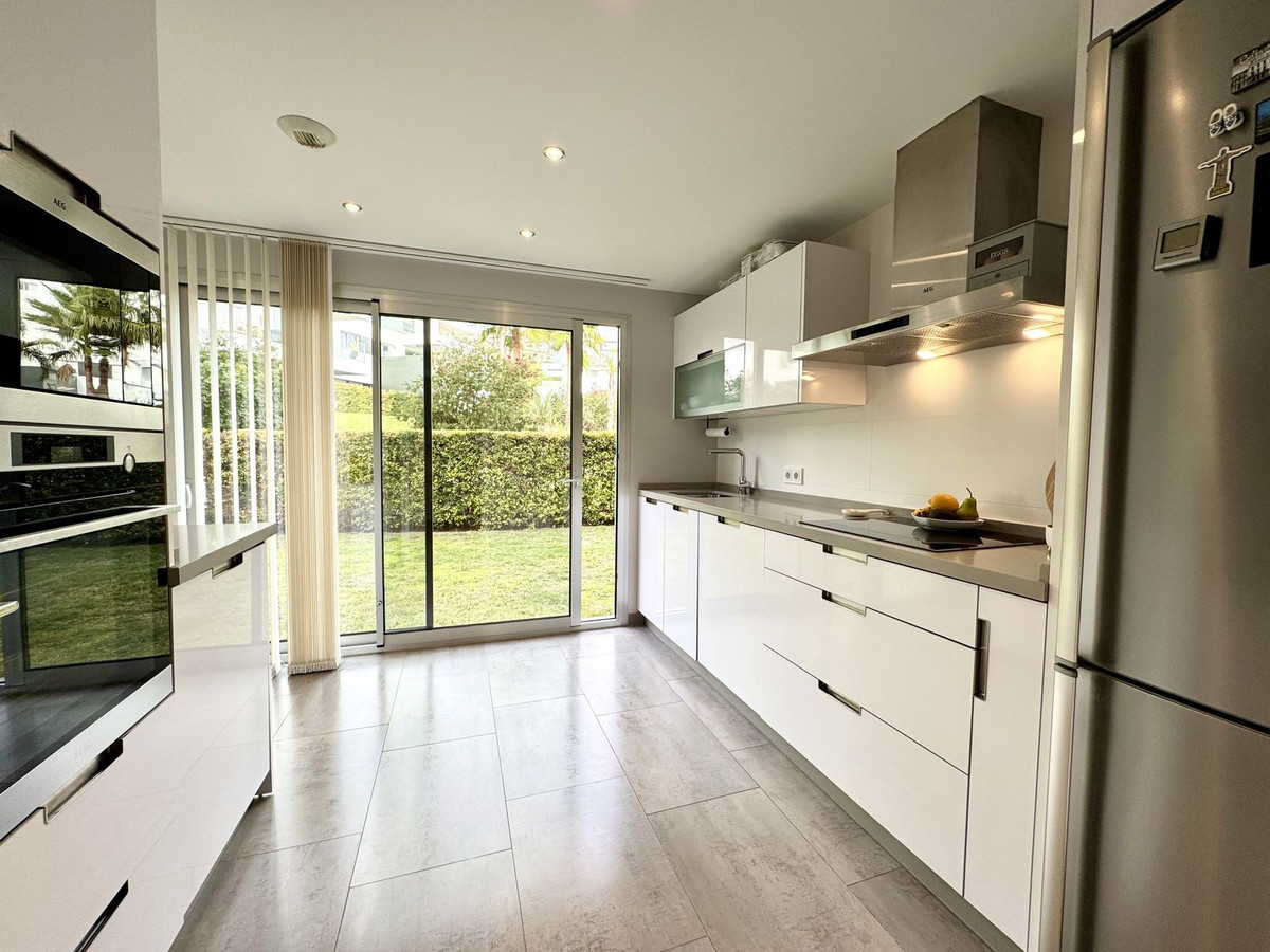 This superb, modern ground-floor apartment is located in Marques de Guadalmina, a sought-after gated community just 7 minutes from Puerto Banús. The apartment features a huge exterior terrace and a large U-shaped private garden surrounding the property, offering an ideal family lifestyle.