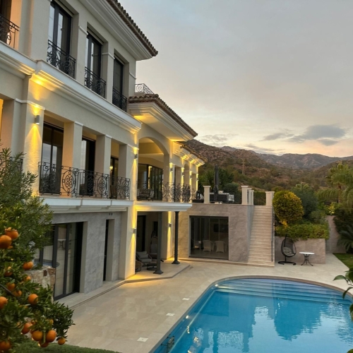 The Villa is located at the foot of Marbella's stunning mountains, close to the city center, with excellent seafront views.