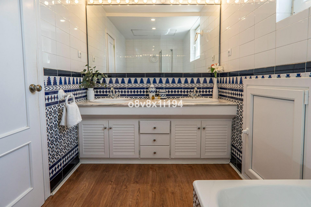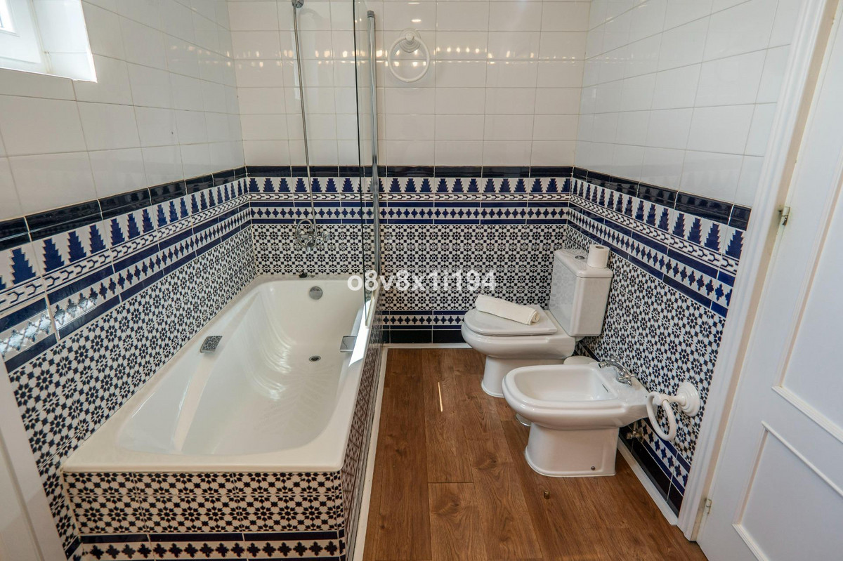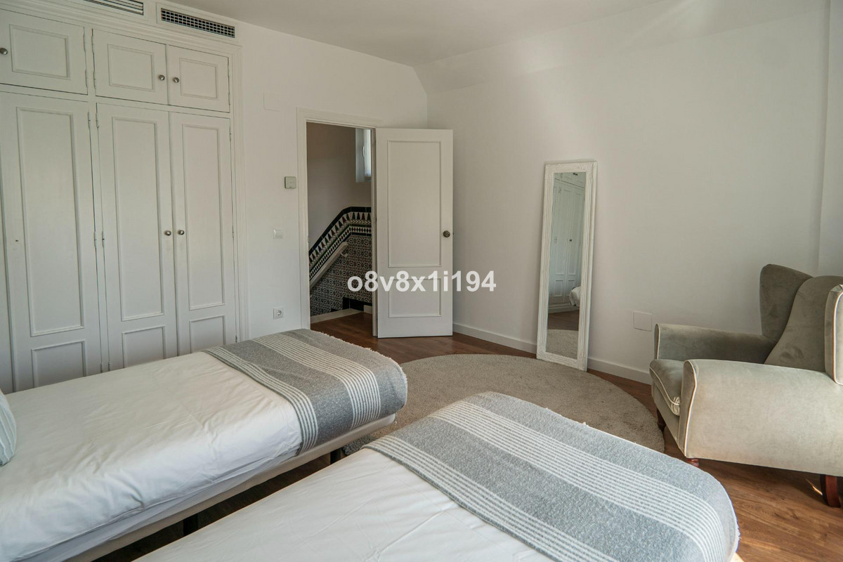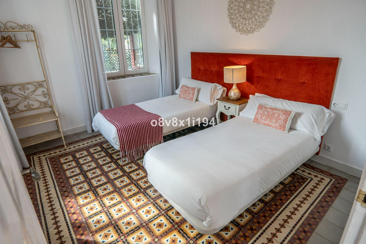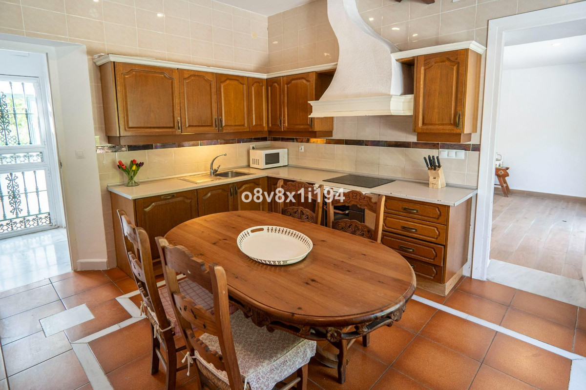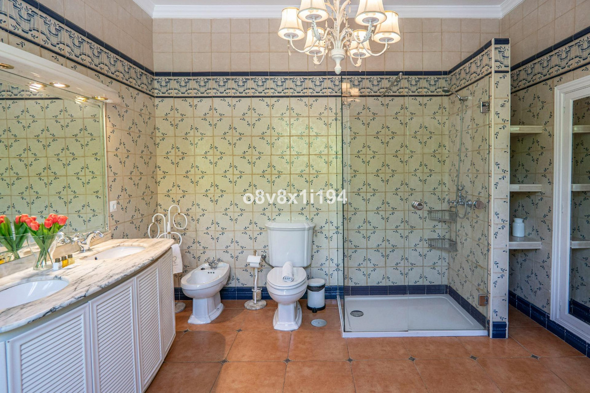 It consists of a spacious and charming entrance hall, a beautiful and cosy living room with a fireplace, a large glazed terrace, which leads to another charming Andalusian-style dining room, a beautiful living room, five bedrooms with built-in wardrobes, three bathrooms, two of them with a shower and the other with a bathtub, a kitchen and a beautiful patio.