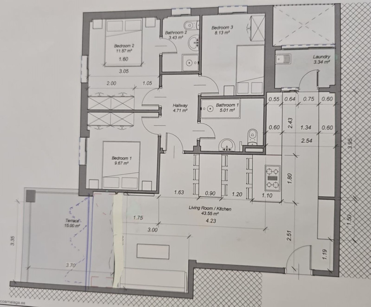 Fantastisk möjlighet att köpa en helt nyrenoverad lägenhet i hög Skandinavisk standard runt hörnan från Svenska Skolan i Fuengirola. Den är på rymliga 110 m2 och har 3 sovrum och 2 badrum. Läget på terrassen är i syd-väst med sol hela dagen och fri utsikt från våning 6. Läget vid parc Rosario är väldigt lugn utan genomfartstrafik. Allt är helt nytt i lägenheten och av hög kvalitet; fönster, kök, maskiner, golv, el-ledningar, VVS, AC, dörrar och kakel. Mycket bra uthyrnings potential.