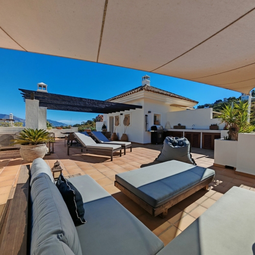 Stunningly refurbished 3-bedroom, 2-bathroom apartment offering breathtaking panoramic views of the Mediterranean Sea, the beautifully landscaped community grounds, and Marbella itself.
