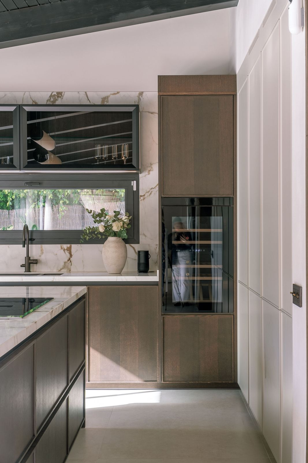 Invändigt möts du av en genomtänkt användning av naturliga material och lugna färger, vilket skapar en inbjudande atmosfär som främjar avslappning. Den rymliga planlösningen omfattar fem vackert designade sovrum och sex moderna badrum, vilket gör denna villa idealisk för både familjer och dem som älskar att bjuda in gäster.