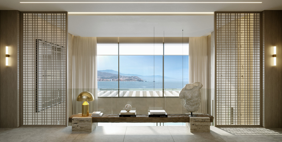 Projektet förmedlar omedelbart Essensen av Äkta Lyx tack vare sina imponerande rum. Det dubbla vardagsrummet har exceptionellt stora dimensioner och ger en känsla av oändligt utrymme. Stora golv-till-tak fönster, rymliga vardagsrum, generösa sviter med terrass och jacuzzi, panoramautsikt över havet, stora terrasser och sublim design är några av de funktioner som kommer att göra ditt hem.