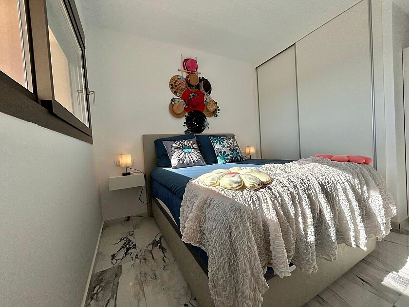 Den har stora terrasser, alla i söderläge, med utsikt över La Zenia och havet.