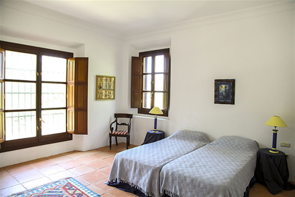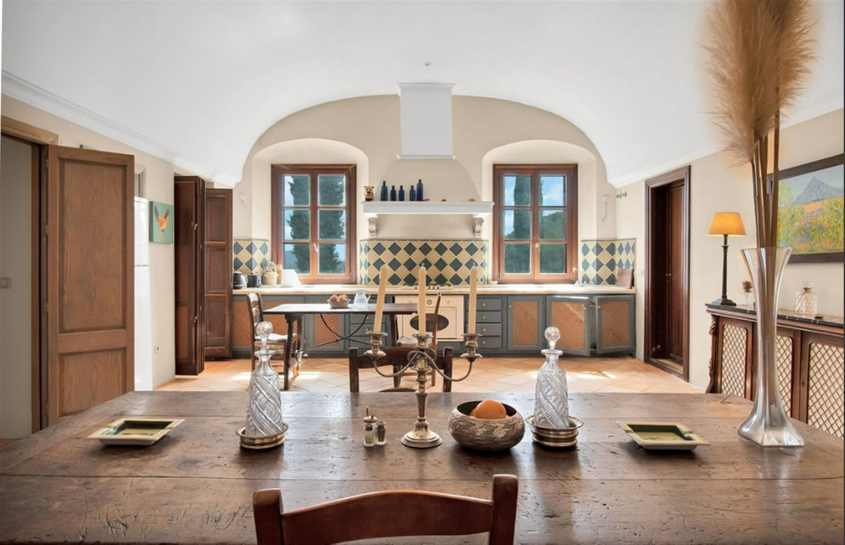 Beläget bara några kilometer från den charmiga byn Gaucín, är denna anmärkningsvärda villa omgiven av frodig, året runt grönska och karga berg, vilket ger både avskildhet och naturlig skönhet. Huvudbyggnaden, med en total yta på 560 m², är designad i en klassisk medelhavsstil som kompletterar dess lantliga miljö. Med 4 rymliga sovrum, 4 badrum och en bekväm gästtoalett, har hemmet genomtänkt utformats för att maximera ljus och utrymme, med varje rum med panoramautsikt över det spektakulära landskapet.