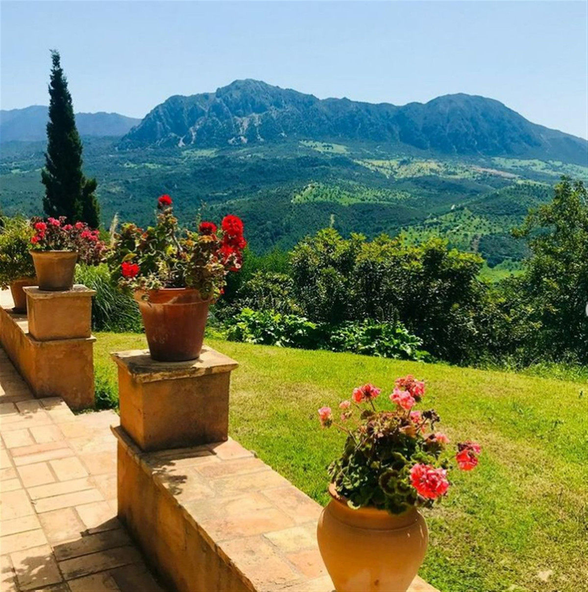 Fastighetens 53 000 m² stora tomt känns som en oas, med doftande trädgårdar och imponerande utsikt överallt. Den stora täckta terrassen, komplett med en grillplats och inbjudande hörn att koppla av, erbjuder den perfekta miljön för att njuta av utomhusliv året runt. Oavsett om det är att äta utomhus, slappa i solen eller underhålla vänner, är detta utrymme perfekt för att skapa minnen.