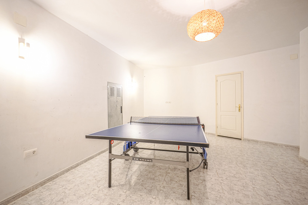 The ground floor consists of a double bedroom, a bathroom, a living room, a gym, a billiard room and 3 further rooms offering many possibilities. Through the lounge there is direct access to a large covered terrace.