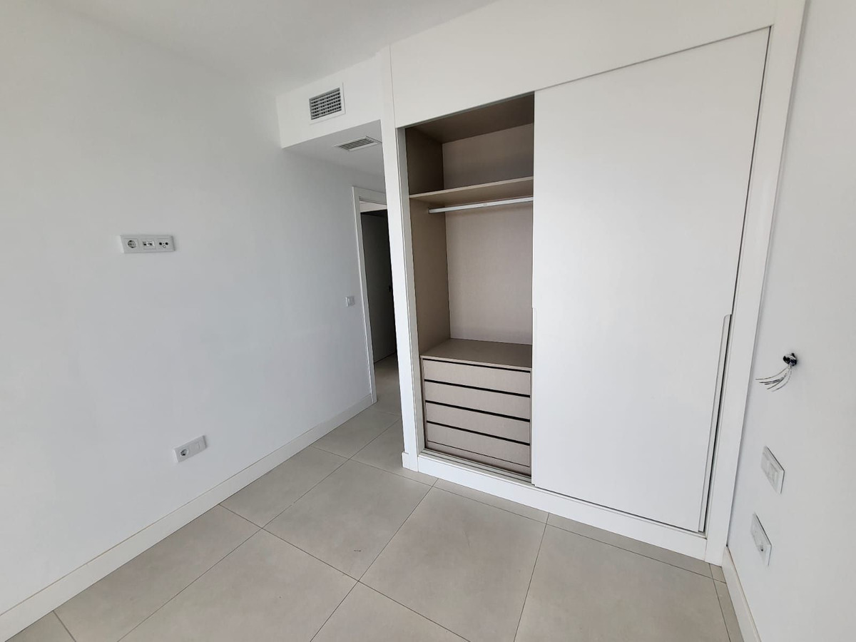 New apartment located in a new complex of 160 modern apartments in the Higueron area. The apartment has 2 bedrooms and 2 full bathrooms. The living room is bright with an open kitchen solution. From the 28 sqm terrace, there is a sea view to the southeast and a glimpse of the sea to the south. The bathrooms have underfloor heating that can be used in winter. In addition, the property is equipped with 2 private garage spaces and a storage room. The complex is within a gated area with several pools, green gardens, and various recreational areas. From the apartment, it is less than 50 meters to the pool, which has outdoor showers and toilet facilities.From the road, there is access to the garage through a gate that opens with a remote control. There is a storage room when parking. There is easy access from the garage to the apartment via stairs and an elevator.