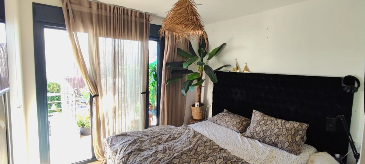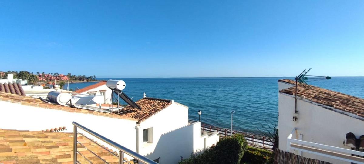 Vackert renoverat hus i andra linjens strand bara 15 meter från stranden, med spektakulär utsikt över Medelhavet och Estepona-bergen.Huset har 77m2 användbara och 60m2 terrasser.