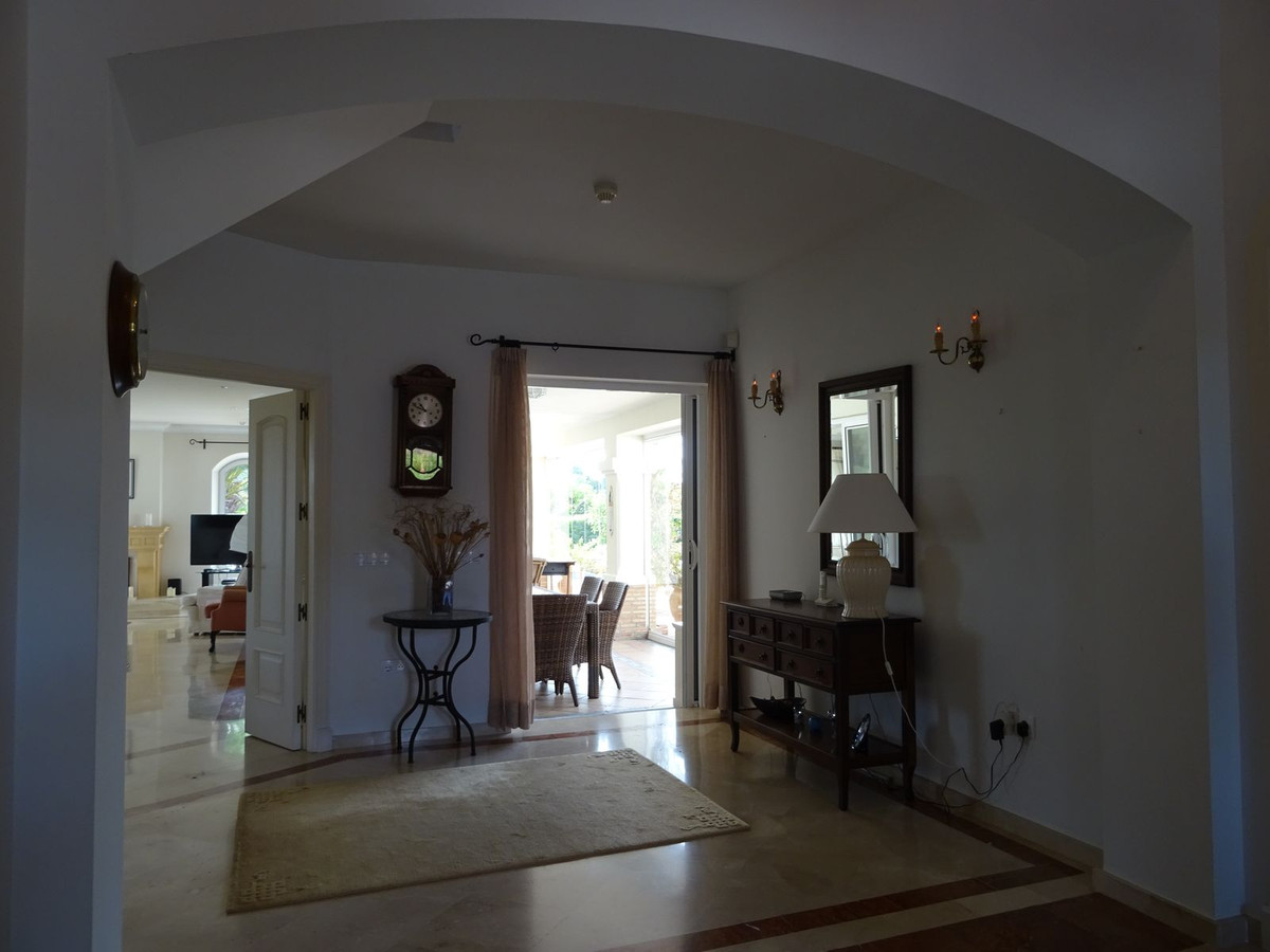 Inside there is a spacious living room with a fireplace, another living room also with a fireplace, a separate dining room and a fully equipped kitchen / breakfast room.There is also an ensuite guest bedroom on this level.All bedrooms have access to the terrace, which surrounds the house and leads to the solarium area next to the pool.All bedrooms are very spacious with large en-suite bathrooms and plenty of storage space.The master bedroom is very generous in size, with a dressing room and access to a private terrace.The gardens are lawned, with mature plantings and offer excellent views of the surroundings.On the lower level there is an entertainment suite, with spacious living and dining areas, and a spa with sauna, shower and bath.