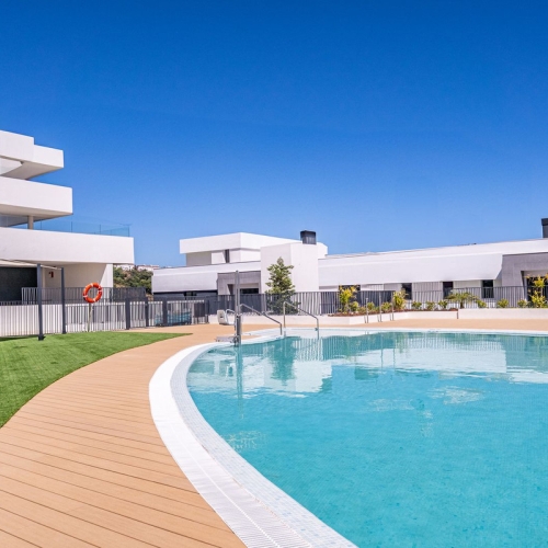 The apartment features a spacious living and dining area with large floor-to-ceiling windows that flood the interior with natural light and seamlessly connect to a generous private terrace—perfect for al fresco dining and enjoying Marbella's spectacular sunsets. The fully equipped kitchen combines functionality with style, while the two bedrooms provide a serene and comfortable retreat, with fitted wardrobes and elegantly designed bathrooms.