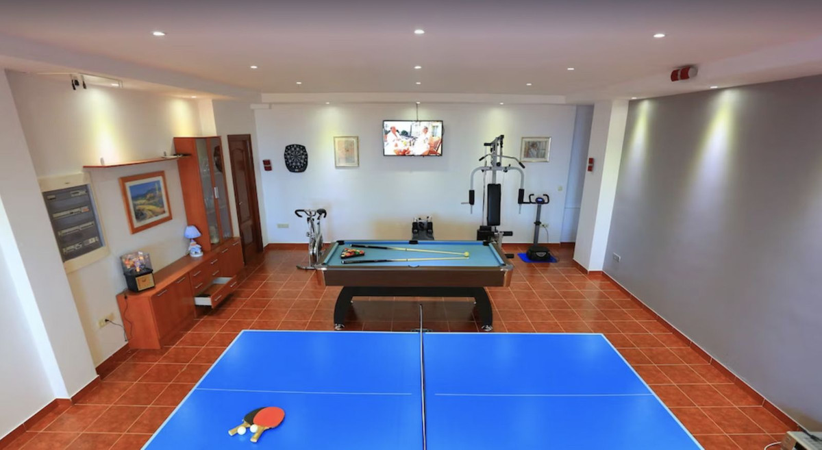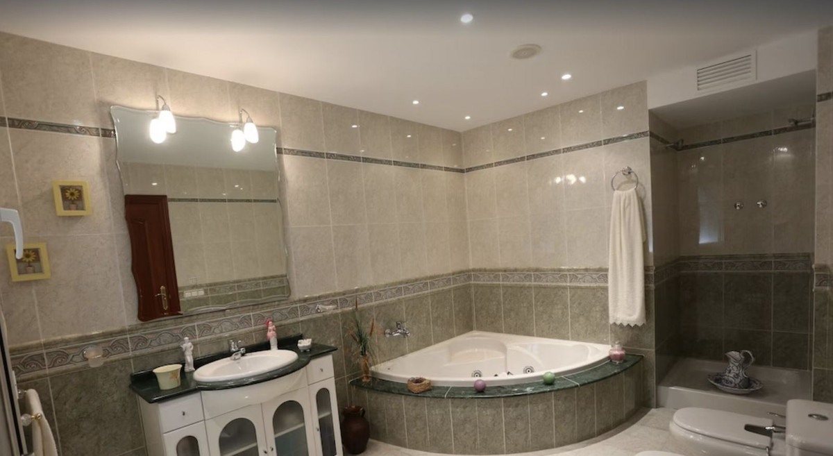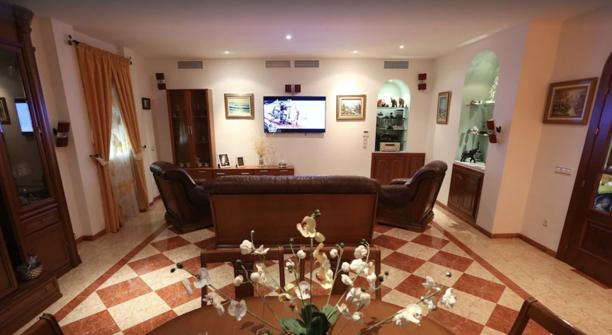 This villa consists of 500 meters of built area approximately, on a plot of 850 m2, on the entrance floor has its impressive swimming pool, jacuzzi, cinema screen, barbecue, cinema room, games room (pool table, ping pong, darts) and gym, living room, kitchen, bathroom and bedroom. 1st floor has main living room, big terrace with views, main kitchen, 2 bedrooms, 2 bathrooms. 2nd floor has 3 bedrooms all en suite + turret with another bedroom.