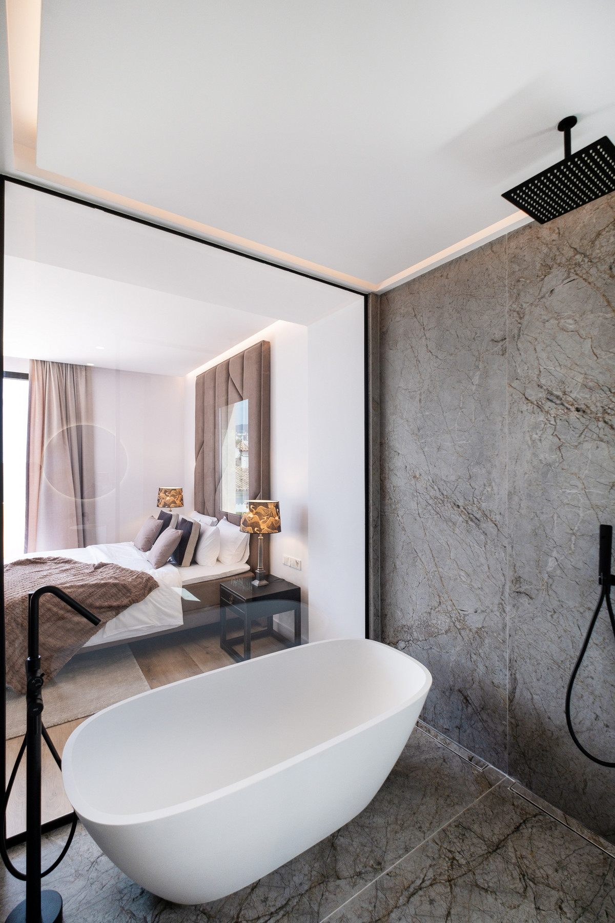 Fastighetens utomhusytor är lika inbjudande som interiören. Den täckta terrassen leder till en anlagd trädgård och har en infinity-pool som förstärker den panoramiska havsutsikten. Integrerade solbäddar erbjuder den perfekta platsen för att njuta av den medelhavssolen, medan en soldäck, pergola, grillplats och chill-out-områden skapar en perfekt atmosfär för sociala tillställningar eller lugn avkoppling. När dagen går mot sitt slut erbjuder terrassen en idealisk plats för filmkvällar under stjärnorna med sin unika månbelysta biograf.