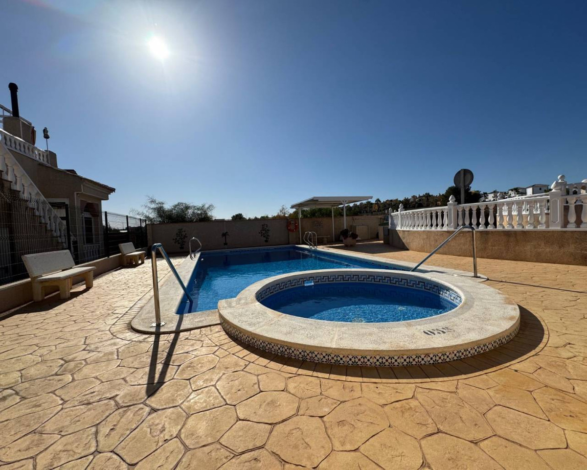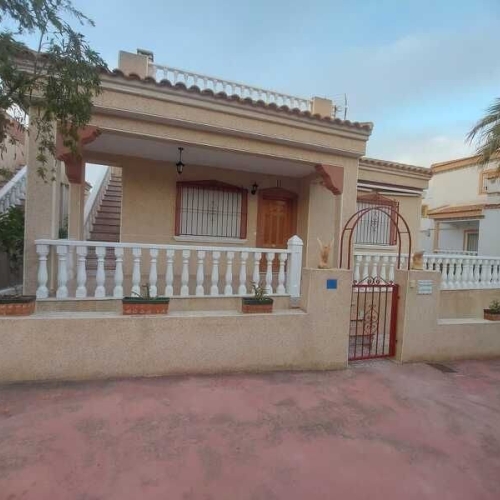 Located at the end of a cul de sac on the popular Montemar urbanisation in Algorfa is this three bedroom detached villa.