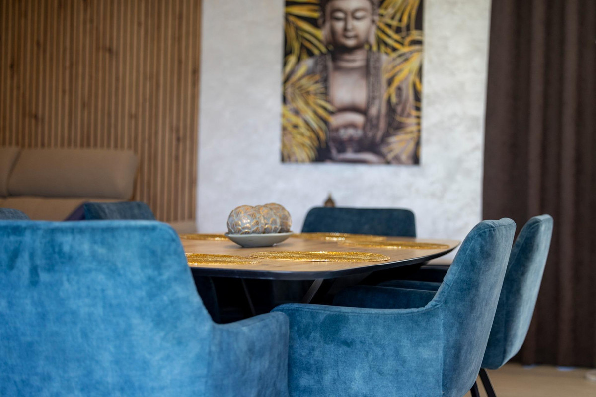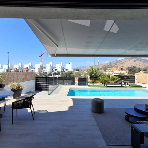 Luxury villa in prestigious Sierra Cortina de Finestrat with sea views!We offer for sale an exclusive new house with stunning sea views, completely renovated in January 2024. With a built area of 350 m², the property is located in a prestigious newly developed area, close to the Sierra Cortina Resort and Villaitana Golf Club.The house has 4 bedrooms, including a multipurpose room situated in the basement, each with its own private bathroom. It is fully furnished and move-in ready, featuring high-quality finishes such as Venetian stucco and natural materials. The furniture, lighting fixtures, and appliances (by Miele) were carefully selected to provide maximum comfort and style since the property was built for personal use.Additional features include:- Underfloor heating - Solar energy installation of 6.5 kW - Electric awnings on terraces - Windows with protective polarized coating - Expanded heated pool of 32 m² with protective cover - High-quality outdoor furniture - Automatic irrigation system - Private parking space - Eufy surveillance system n - Mosquito nets on sliding doorsnThis is a unique opportunity for those looking for a fully equipped home ready to move into. The house is perfect both as permanent residence or investment.