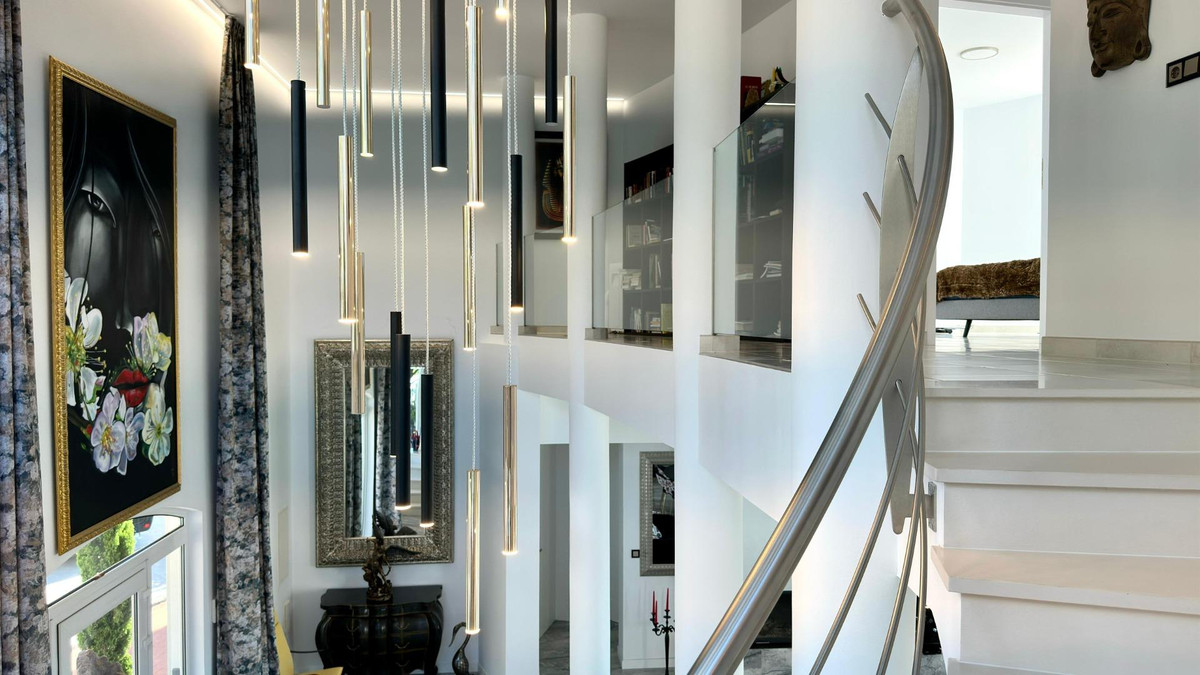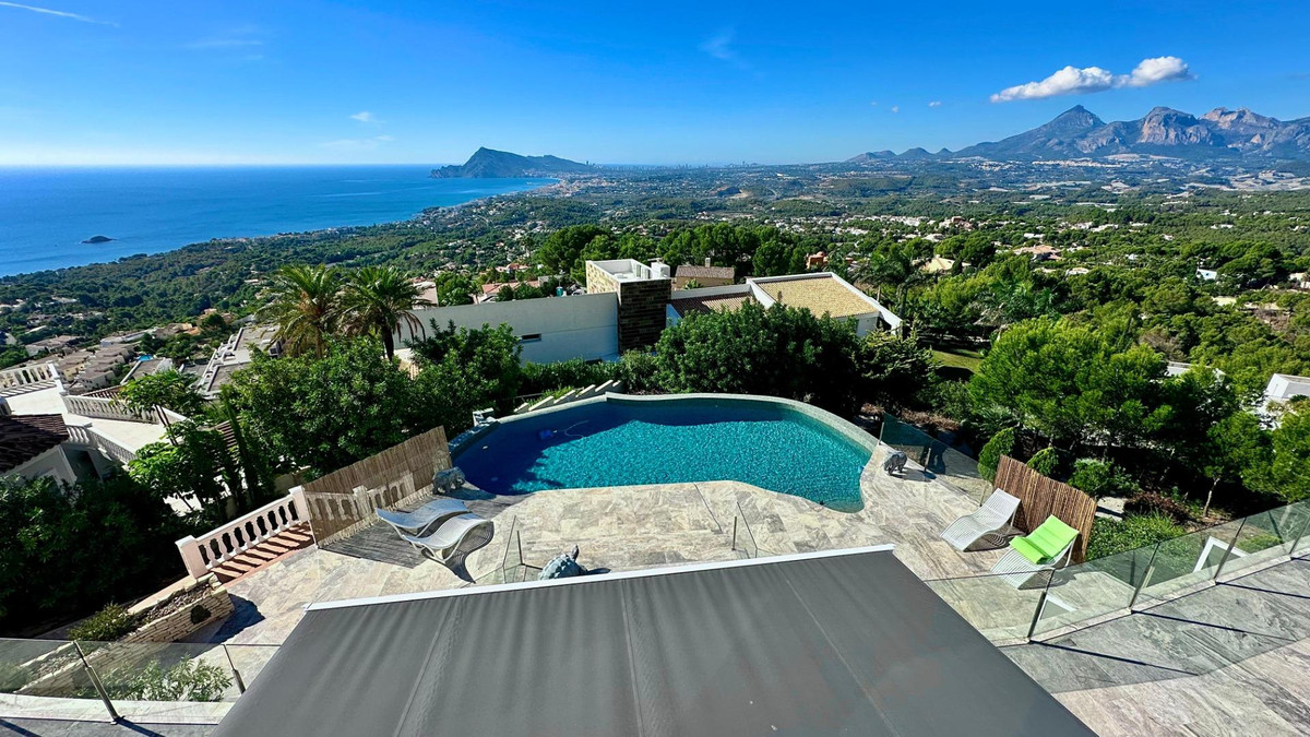 Elegant Villa with Sea Views and Altea la Vella ????✨This impressive villa of 380 m² built on a plot of 2,200 m² is located in one of the most exclusive areas of Altea la Vella, offering spectacular views of the sea and the Altea valley from any angle. ????️????The property is distributed over two floors and has:- 3 large bedrooms, perfect for relaxation.- An office to work from home in style.- A large fully equipped kitchen.- A spacious living-dining room with a fireplace, ideal for family gatherings or moments of relaxation.The villa has several terraces that invite you to enjoy the outdoors and a heated pool to enjoy all year round. In addition, it has additional spaces such as laundry rooms, a gallery and a storage room, and offers the possibility of adding more rooms if desired.Among its features are underfloor heating throughout the house for greater comfort, solar panels for energy efficiency, and a garage for 3 cars plus space to park another 4 vehicles. ????????????The exquisitely designed garden surrounds the property, while the entrance has an automatic gate for added convenience and security. Everything in this villa has been designed with exceptional taste, offering the perfect combination of luxury, comfort and style. ✨????A unique opportunity to enjoy a dream life with the best views of the Mediterranean and a step away from the nature and tranquility of Altea la Vella.