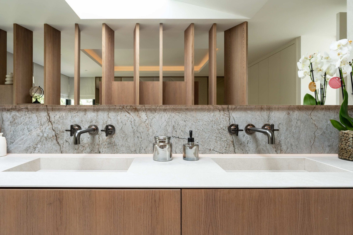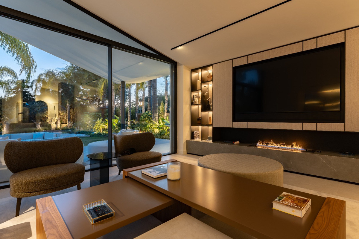 Fantastisk fem sovrum nyrenoverad Villa, inbäddad i den exklusiva gated community av Hacienda Las Chapas, den mest eleganta villor distriktet i östra delen av Marbella. Denna oklanderliga fastighet erbjuder den perfekta blandningen av modern lyx och Medelhavet charm. Beläget på en vackert anlagd 1,562 m2 tomt med över 50 svängande palmer, spänner hemmet 717 m2 av elegant bostadsyta, utformad för komfort och sofistikering. Det öppna planköket, sömlöst integrerat med de rymliga vardags- och matplatserna, har toppen av linjeapparaterna och eleganta samtida ytor, vilket skapar ett inbjudande utrymme för både underhållande och vardagsliv. Stora våningen till takfönster översvämmar interiörerna med naturligt ljus och öppnar på de expansiva utomhusterrasserna, där en bio-klimatisk elektrisk pergola ger skugga och stil. Den uppvärmda poolen, som når upp till 35 ° C på vintern, är det perfekta stället att koppla av och varva ner, omgiven av frodig grönska för ultimat integritet. Villan har också golvvärme, luftkonditionering, ett gym och ett elegant spelrum med ett poolbord. En täckt carport för upp till fem bilar erbjuder säker och bekväm parkering med direkt tillgång till huset. Detta exklusiva område är idealiskt beläget nära bekvämligheter samtidigt som en känsla av avskildhet. Hacienda Las Chapas erbjuder 24-timmars säkerhet och ligger nära Marbellas vita sandstränder, olika kända femstjärniga hotell, exklusiva strandklubbar samt många restauranger och 3 minuters promenad till shopping. Det finns utmärkta tennisklubbar inom gångavstånd och nära båthamnen i Cabopino. Tre av de mest kända internationella skolorna i Costa del Sol ligger mycket nära Hacienda Las Chapas, den engelska internationella skolan, den tyska skolan och Colegio Ecos.