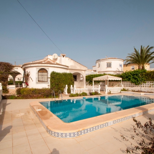 Exklusiv fristående villa i medelhavsstil med havsutsikt och privat swimmingpool i Los Altos, Torrevieja~~Upptäck denna magnifika fristående villa i ett av de mest eftertraktade områdena i Torrevieja. Med en elegant design i medelhavsstil erbjuder denna fastighet den perfekta balansen mellan komfort, privatliv och närhet till alla tjänster.~~5 sovrum | 3 badrum | 131 m² byggt | 330 m² tomt~~Utmärkt läge: Belägen i det lugna bostadsområdet Los Altos, bara några minuter från stränderna i Punta Prima, med enkel tillgång till skolor, livsmedelsbutiker, restauranger och köpcentra som La Zenia Boulevard och Habaneras.~~Hemfördelning:~✔ Första våningen:~Ljust vardagsrum med tillgång till terrasser och avkopplingsområden.~Fullt utrustat kök i egen sektion med tvättstuga.~1 sovrum och 1 badrum med dusch.~Vacker veranda och trädgårdar.~~✔ Övervåning:~2 sovrum.~1 fullt badrum med badkar.~Terrass med klar utsikt.~~✔ Halvkällare:~2 extra sovrum, perfekta för gäster.~Fritidsområde.~1 fullt badrum med badkar.~Förråd.~Verkstad.~~På denna våning är det direkt tillgång till den spektakulära privata saltvattenspoolen och en mysig terrass med öppen spis.~~???? Du kommer att älska:~✅ Den privata saltvattenspoolen.~✅ Flera terrasser för att njuta av solen och utomhuslivet.~✅ Bostadsområde med gemensam swimmingpool.~✅ Säljs fullt möblerad.~✅ Utmärkt kommunikation med AP-7 och N-332, vilket underlättar tillgången till Torrevieja, La Zenia och Alicantes flygplats.~~En unik fastighet, idealisk både som permanentboende och för att njuta av en oförglömlig semester på Costa Blanca. ~Missa inte denna möjlighet! Kontakta oss för mer information eller för att boka en visning.~~Skatter och avgifter ingår inte i priset.
