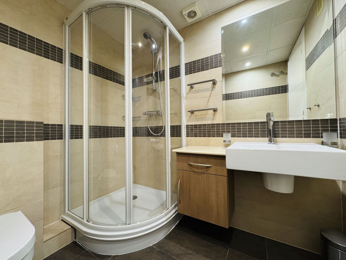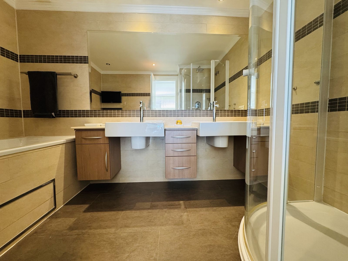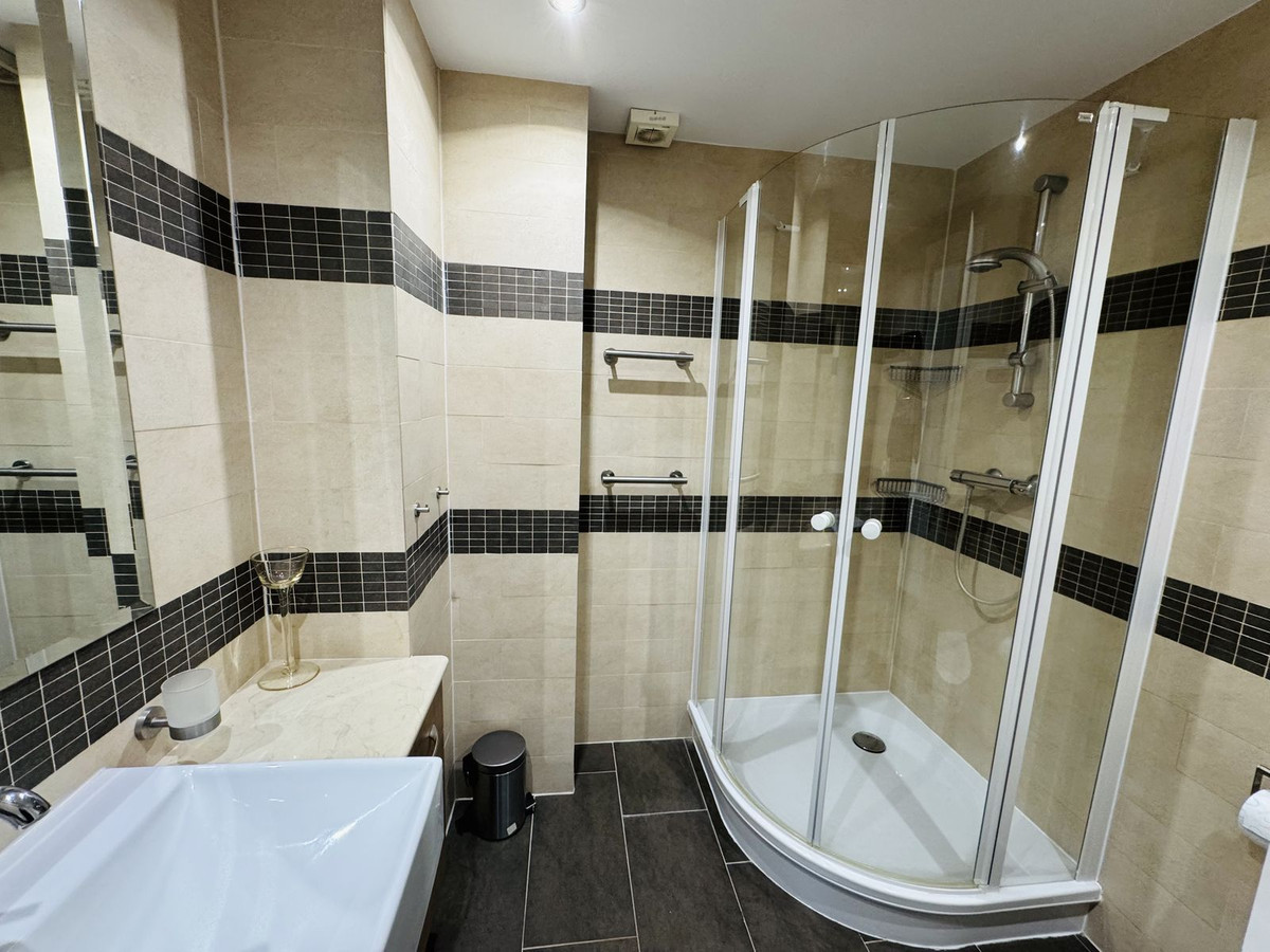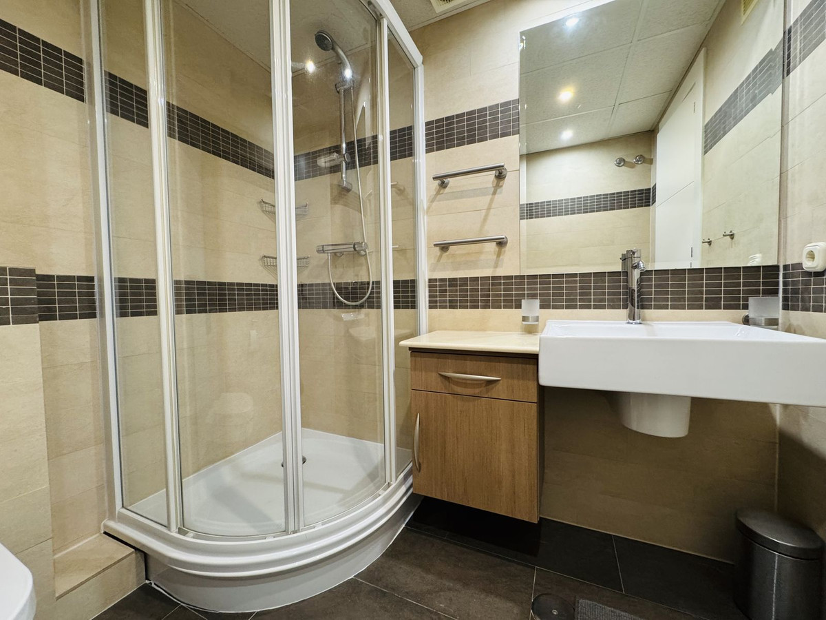 The master bedroom has a dressing room and ensuite bathroom, while the other two bedrooms offer sea views and built-in wardrobes. The bathrooms are equipped with a shower and bathtub for your comfort. A large closed garage of 46.41 m2 valued in 100.000€ is included in the price.