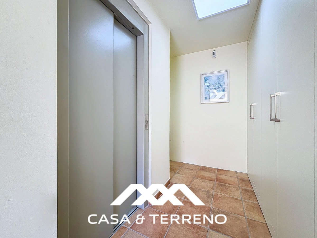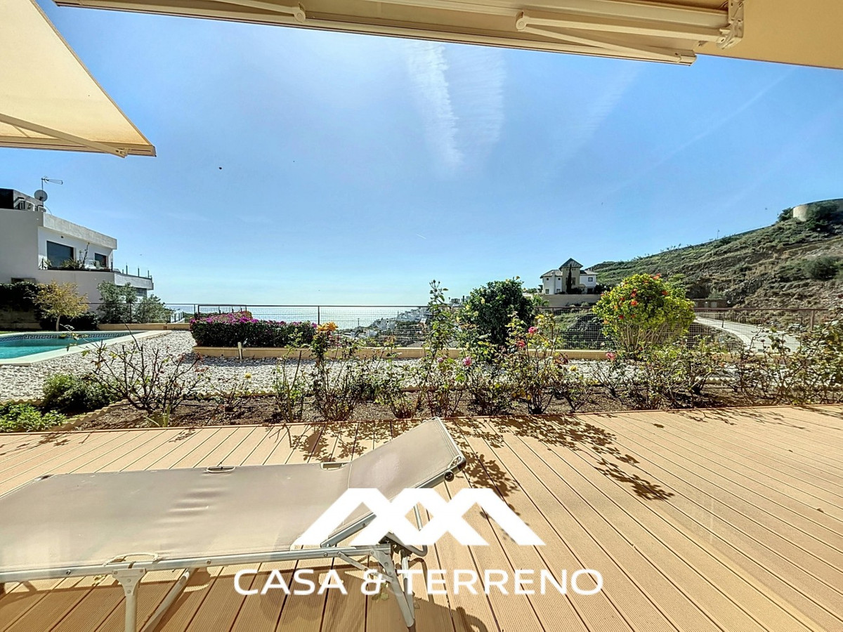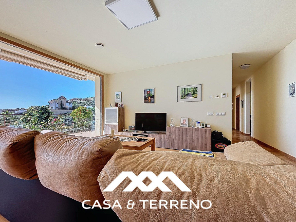 This luxurious Mediterranean villa in Torrox, Málaga, is spread across two floors and offers breathtaking sea views. The property is designed with sustainability in mind and is a true zero-energy home, maintaining a comfortable temperature year-round thanks to its high-quality insulation and comfort ventilation system. Solar panels further enhance its energy efficiency. The main floor features an open-plan living area with a sleek and modern kitchen, equipped with light-colored cabinetry and integrated appliances. The spacious living room is bright and airy, seamlessly blending indoor and outdoor spaces through large glass doors that open onto a sun-drenched terrace. This terrace offers stunning panoramic views of the sea and surrounding landscape and includes a private swimming pool, making it an ideal spot for al fresco dining and relaxation. The villa boasts three well-appointed bedrooms, including a master suite with an en-suite bathroom. The additional two bedrooms share a stylishly designed bathroom with contemporary fixtures, such as walk-in showers and floating vanities. An office space with built-in storage provides a dedicated area for work or study. A standout feature of the home is its accessibility. A lift connects both floors, ensuring comfort and convenience for all residents. The villa also includes ample storage solutions, with built-in wardrobes in the bedrooms and additional organized spaces throughout the house. Outside, the landscaped garden enhances the Mediterranean ambiance, offering a serene retreat. A carport provides secure parking. The property sits on two building plots, offering the possibility to construct additional structures if desired. Designed by the current owner, this villa incorporates unique architectural elements and thoughtful details that set it apart. Combining Mediterranean charm with modern sustainability, this home is a perfect sanctuary in the heart of the Costa del Sol. We are pleased to be able to present this dream property to you soon, either personally or via virtual viewing. Because this world is unique - just like our Axarquía. In Andalusia. On the Costa del Sol. Here, on the sunny side of life...