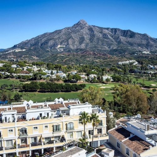 Är du en golfälskare och letar efter en duplex takvåning till salu? Vi presenterar denna utmärkta och sällsynta enhet i Alcores del Golf, Nueva Andalucia. Denna bostadsutveckling är mycket populär tack vare sitt fantastiska läge, sina faciliteter och sitt högkvalitativa boende. Om du är en passionerad golfare kan det knappast bli bättre än att bo vid golfbanan Los Naranjos!