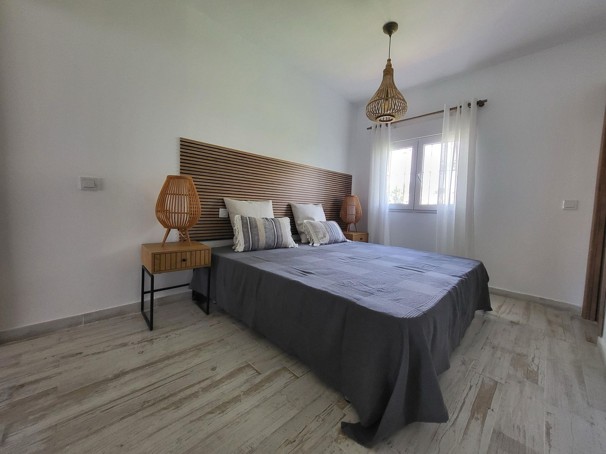 lovely 3 bedroom chalet with very low community fees of only 12 euro per month. The Chalet is located in the area El Faro nearby a communual pool. The Chalet is recently renovated and has a complete new
