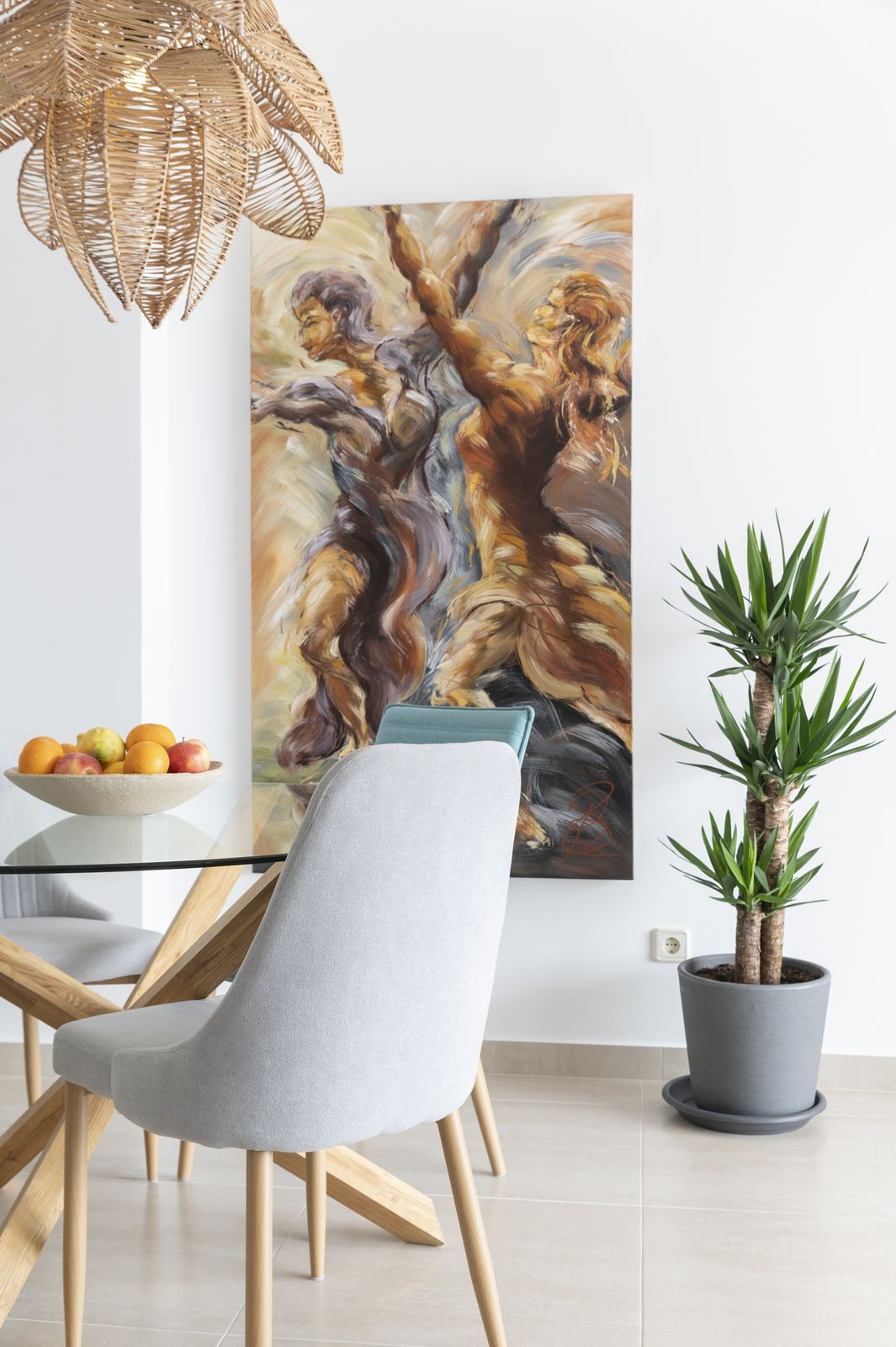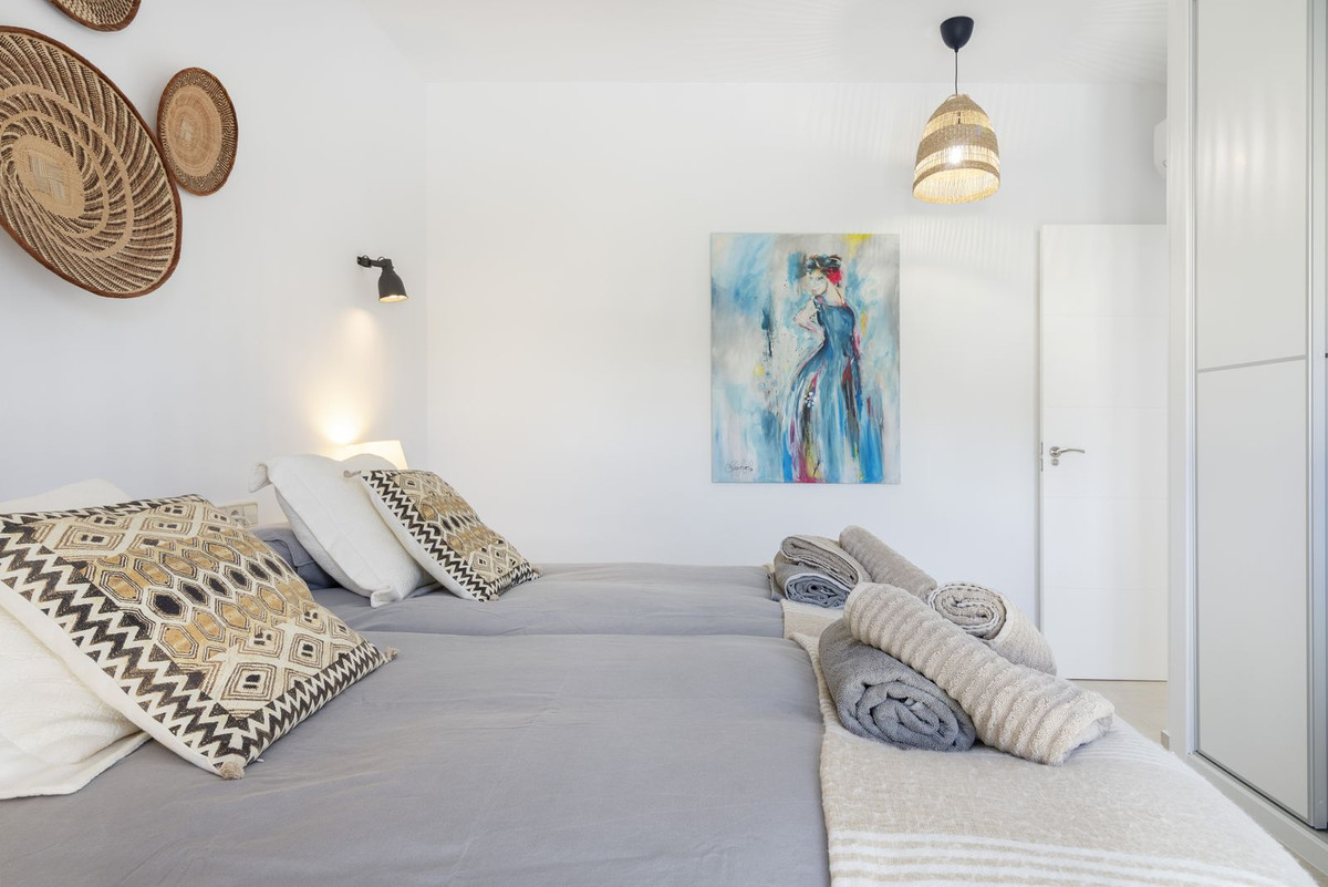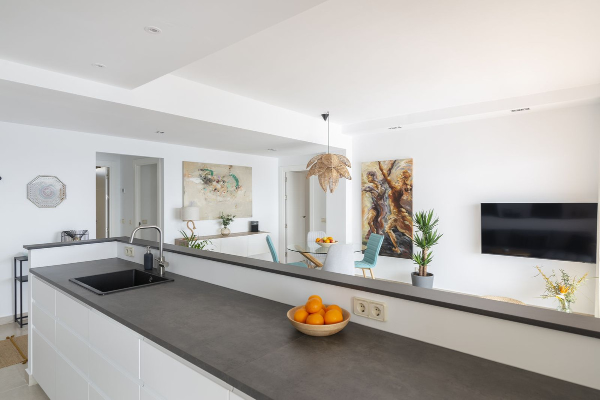 At its amazing location, this dreamy vacation home unfolds with perfection. Boasting a generous 90 m2 layout, it accommodates 2 bedrooms, 2 bathrooms, and a spacious 15 m2 terrace that treats you to breathtaking views. Recently remodelled in 2022, it showcases a brand-new open-plan kitchen with a modern design, contemporary tiling, and two updated bathrooms featuring underfloor heating. The functionality and style of the apartment are elevated by built-in closets in both bedrooms and hallways.
