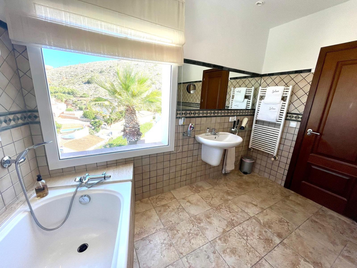 The interior design beautifully combines natural sandstone white-washed walls with timber beams and garden sleepers, embodying the essence of an Ibizan-quality villa set in the desirable El Portet area of Moraira. This enchanting property promises a sophisticated, tranquil lifestyle perfectly suited for those seeking elegance, comfort, and spectacular surroundings.